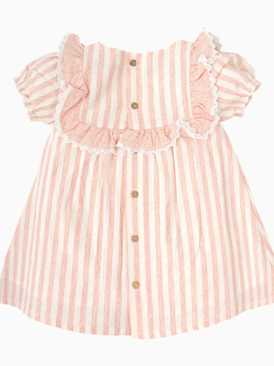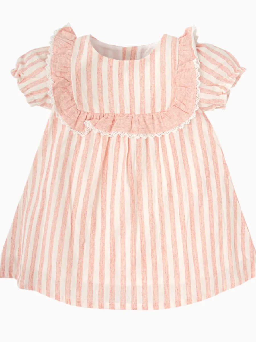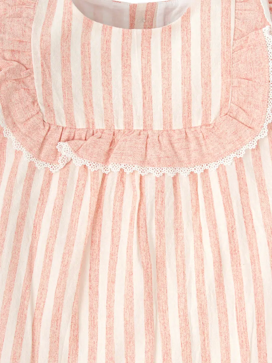 Robe bébé fille rayée – Rose saumon/blanc