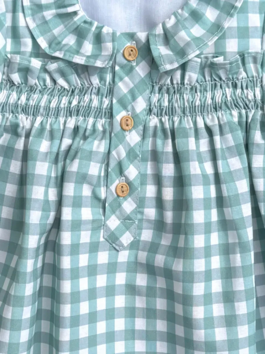 Avec son style classique et son imprimé vichy indémodable, cette robe bébé verte est une merveilleuse idée de cadeau de naissance. Elle séduira par son allure délicate et sa grande polyvalence, idéale pour composer des tenues adorables à chaque saison.