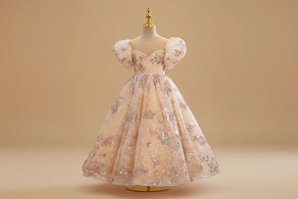 Robe de bal princesse champagne paillettes
