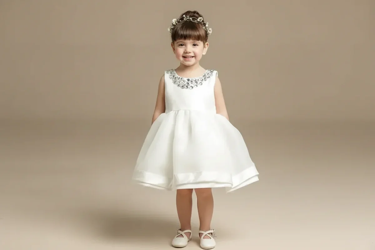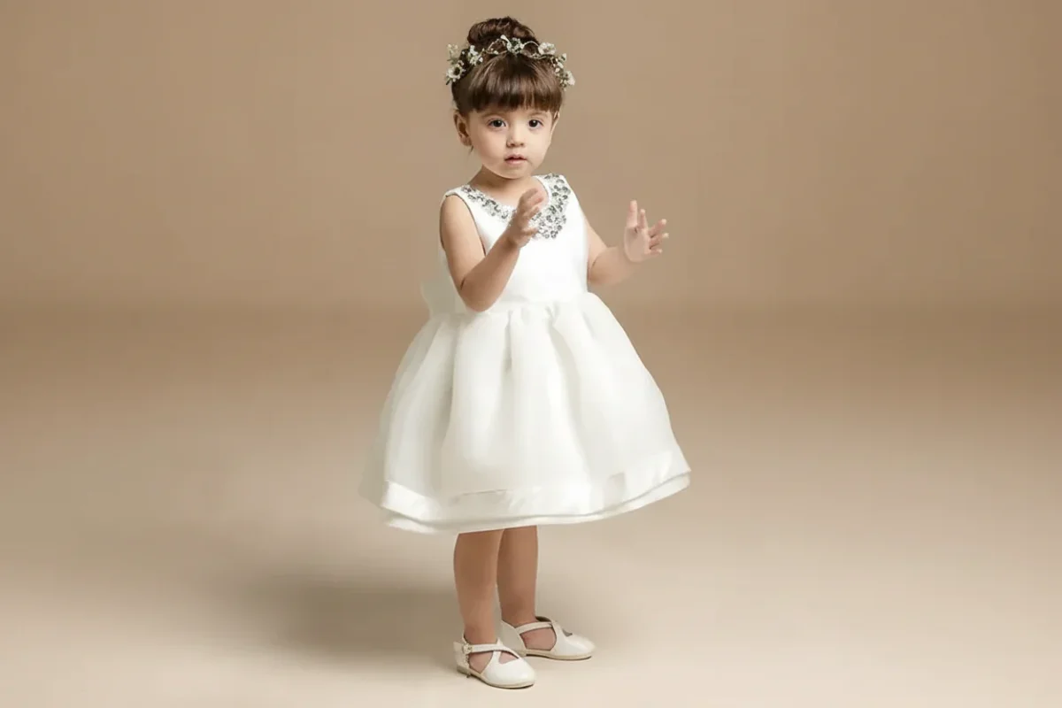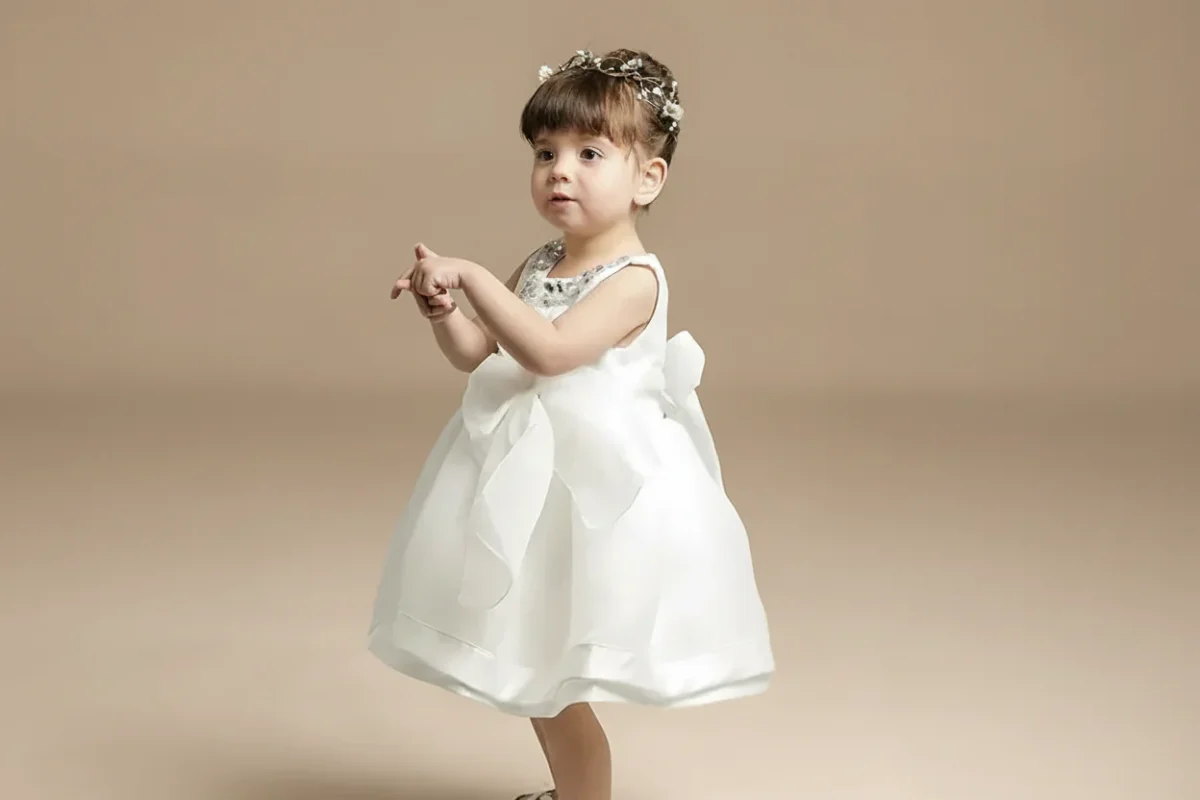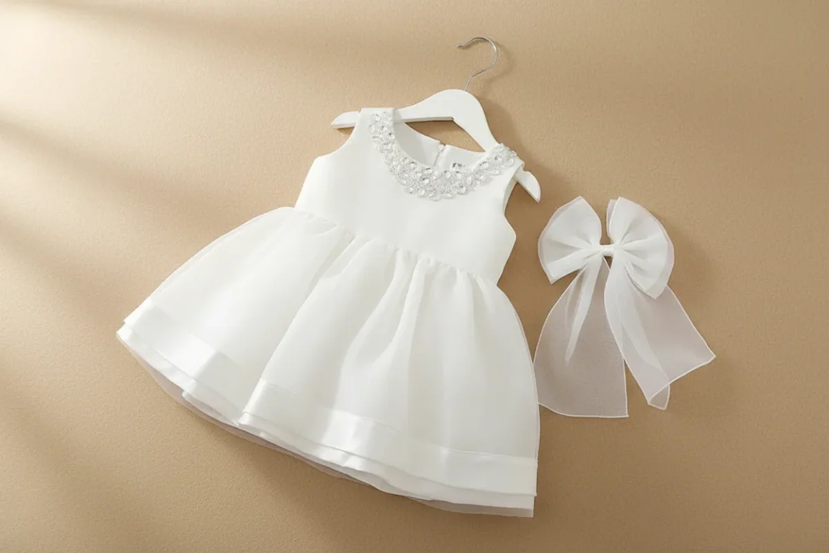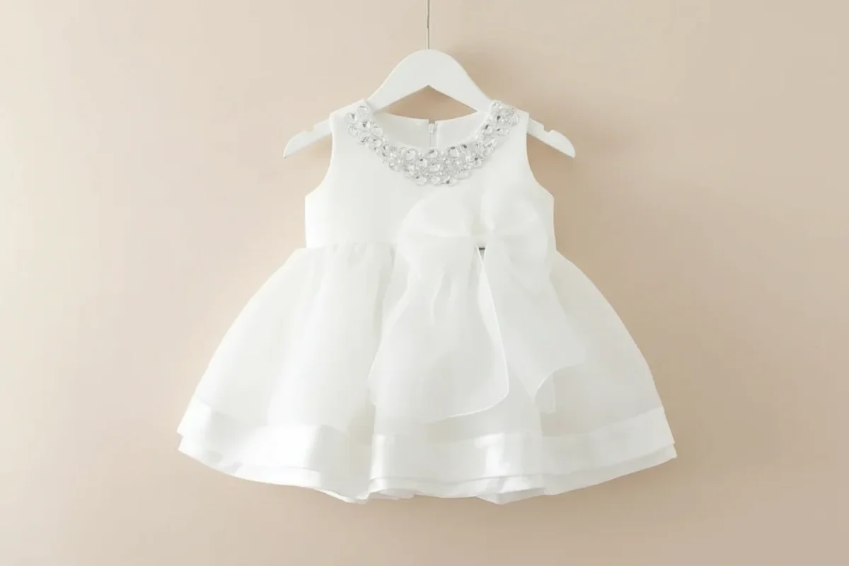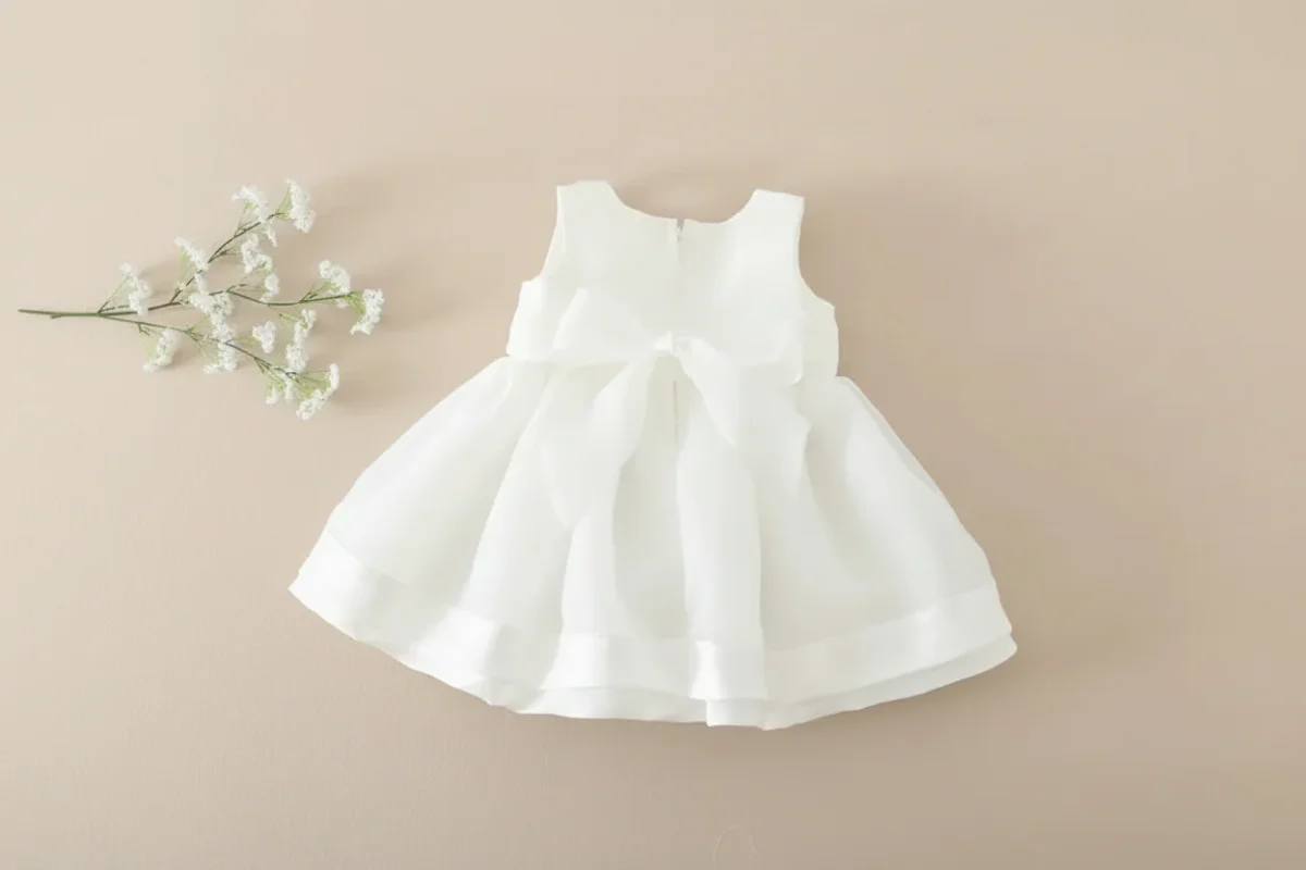 Robe de baptême blanche pour bébé fille : Élégance intemporelle, détails en satin et charme d’un nœud papillon !