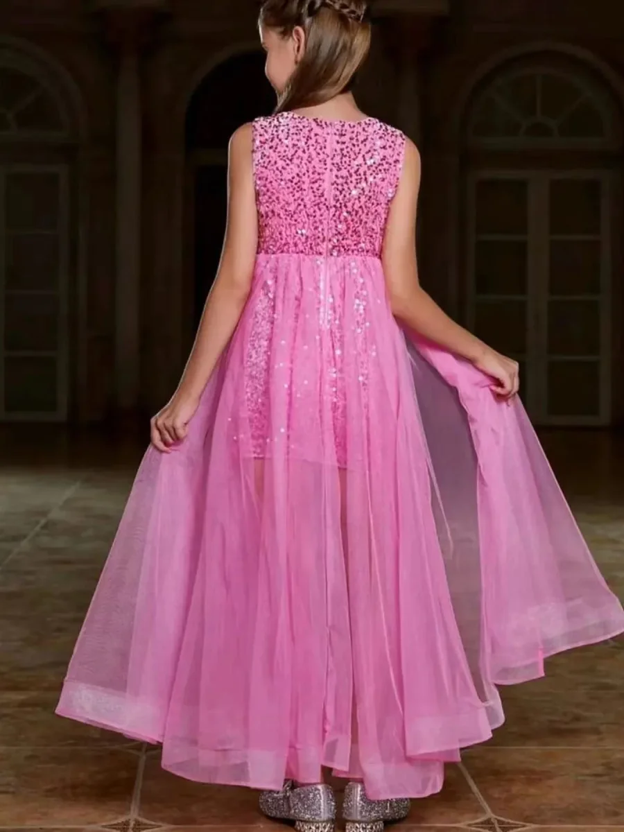 Sublimez les fêtes avec cette robe glamour, idéale pour une jeune fille pleine de style et de confiance ! Son design éclatant en sequins roses attirera tous les regards, tandis que la grande cape en tulle fluide ajoute une touche de majesté et d’élégance. Le large nœud sur le devant apporte une touche audacieuse, pour une allure chic et moderne. Cette robe, parfaite pour Noël et les occasions spéciales, est conçue pour faire briller votre enfant, alliant confort et éclat. Elle est un choix idéal pour celles qui veulent se sentir comme des stars lors des fêtes de fin d’année.