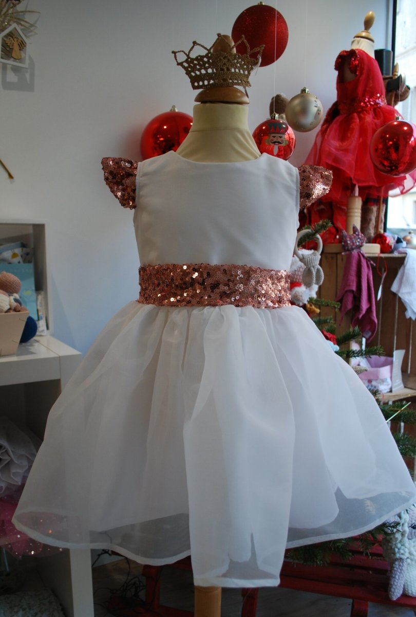 Jolie robe de fête pour petite Princesse. Notre robe pour enfants en organza sera parfaite pour les fêtes de fin d’année. Crée spécialement pour ses fêtes, cette robe est en série limitées. La coupe intemporel fera de votre Princesse la plus belle. Ses petites manches volantées et sa ceintures en sequins la feront brillées toute la nuit.