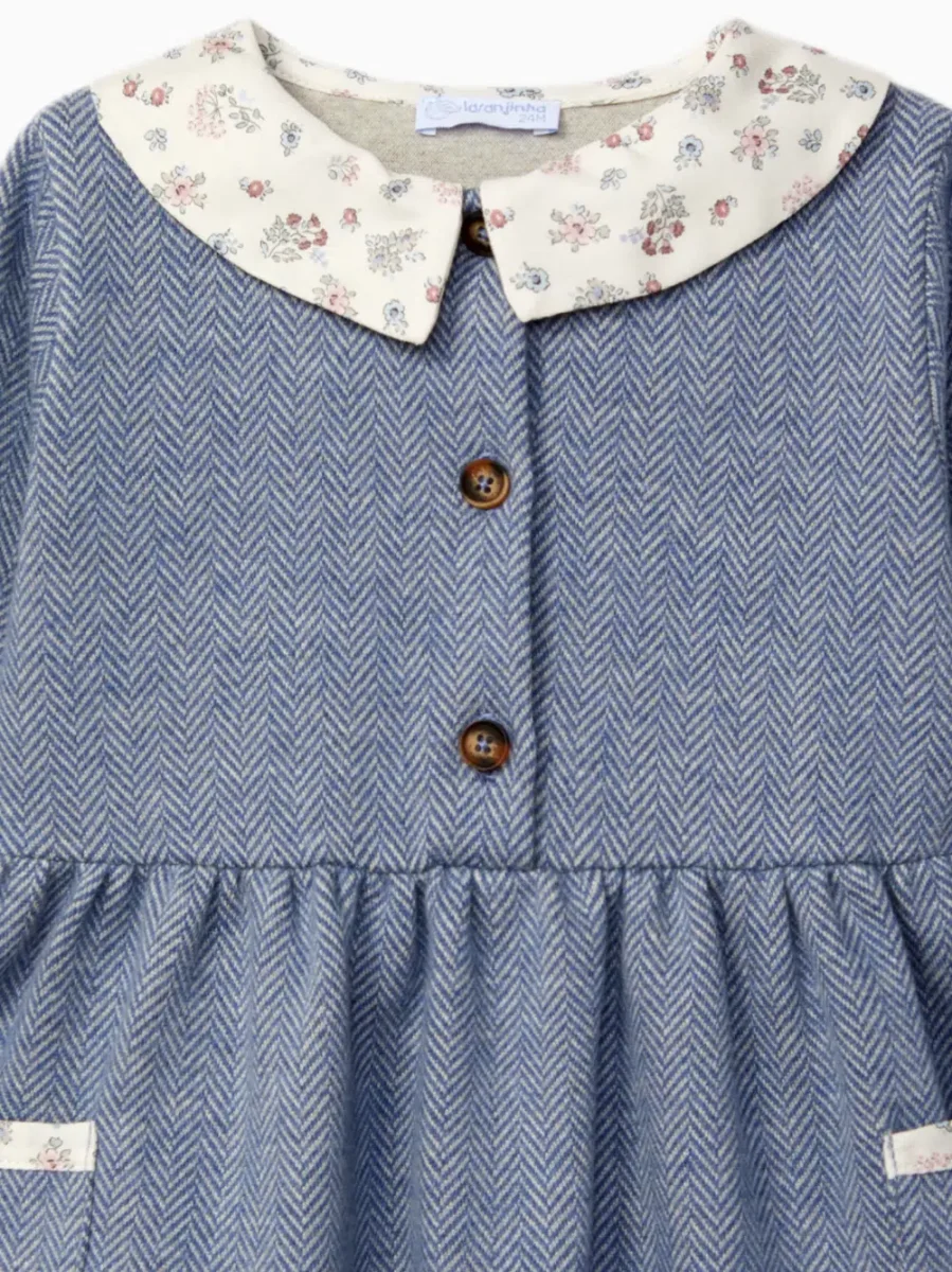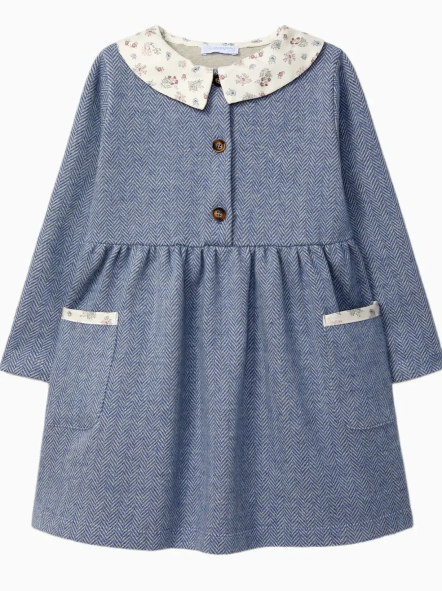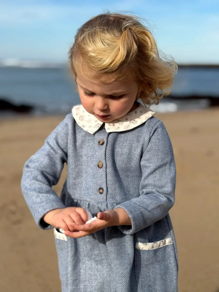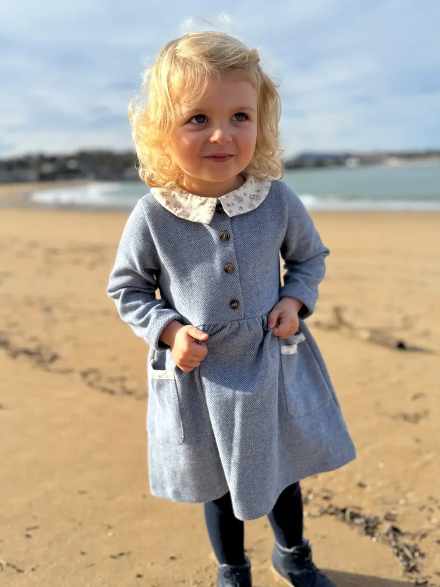 Le motif chevrons apporte une touche subtilement rétro tout en restant moderne et élégant. Il donne du caractère à la robe sans la surcharger, la rendant facile à porter au quotidien, aussi bien pour l’école que pour un déjeuner en famille ou une promenade hivernale.