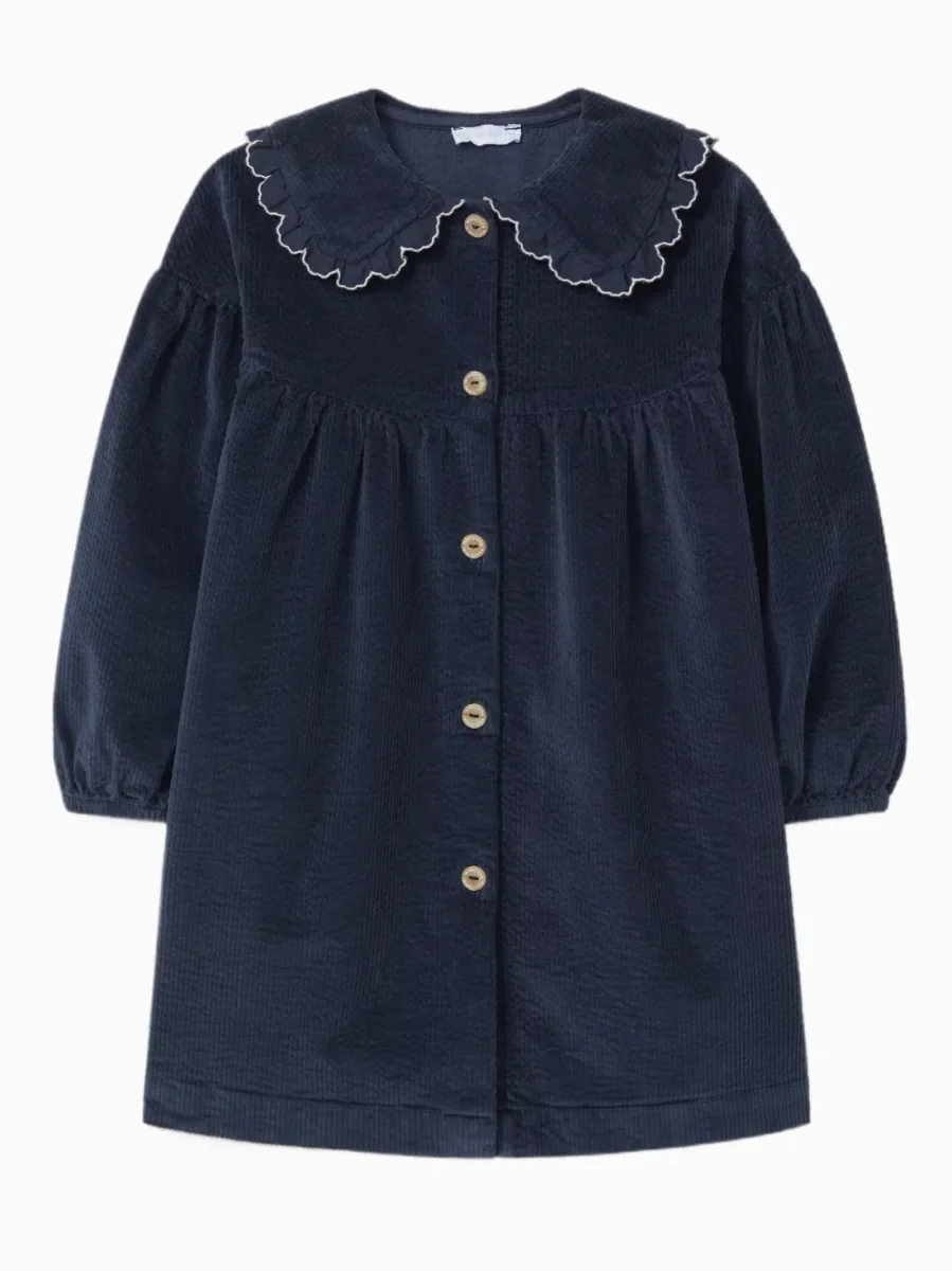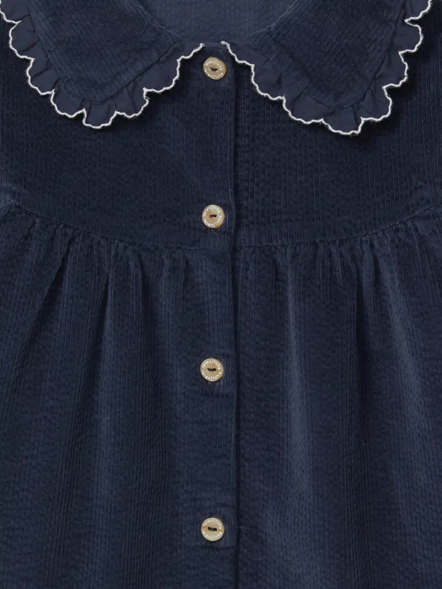Découvrez notre robe en velours côtelé bleu marine, une pièce élégante et confortable, pensée pour habiller les petites filles avec raffinement au quotidien comme pour les moments précieux en famille. Confectionnée en coton de qualité, cette robe associe chaleur et douceur, tout en laissant une grande liberté de mouvement pour accompagner votre enfant dans toutes ses découvertes.