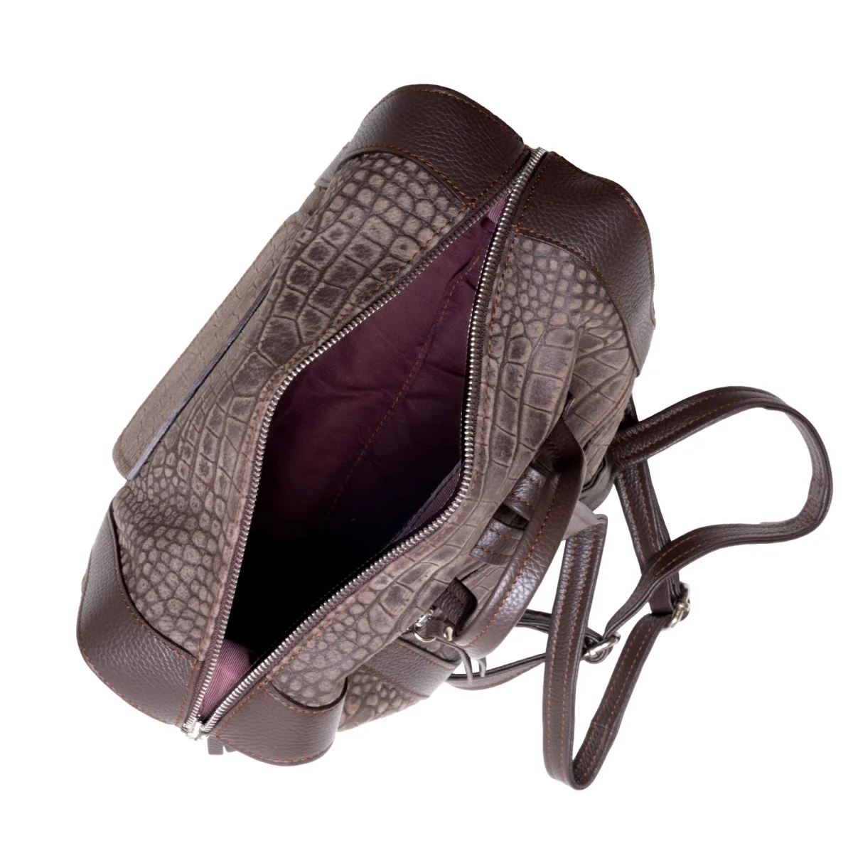 Sac à dos en cuir façon croco, pensé pour conjuguer style et praticité au quotidien. Son format compact et sa fermeture zippée double curseur offrent un accès facile et sécurisé à vos affaires.