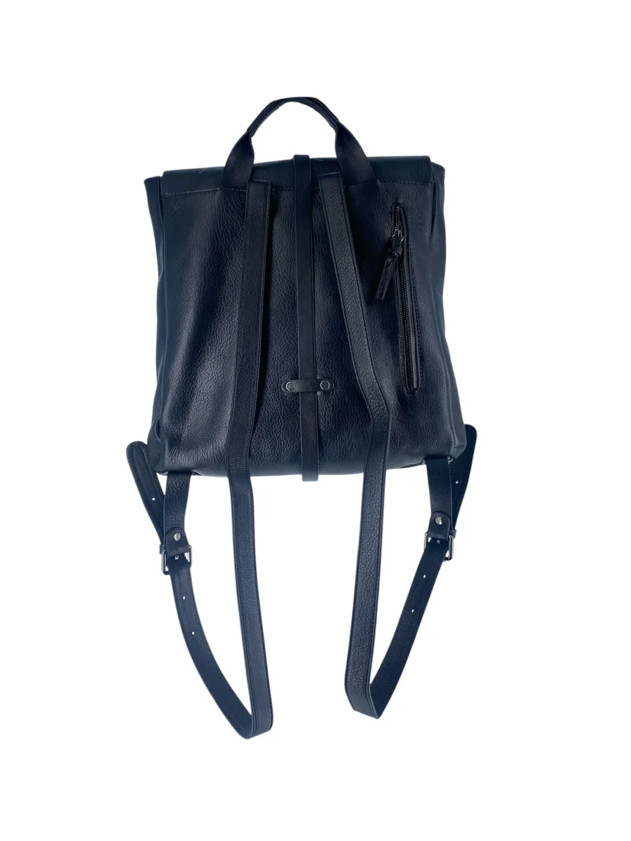 Sac à dos en cuir grainé noir, à l’esthétique minimaliste et élégante, pensé pour conjuguer allure urbaine et praticité. Son rabat structuré avec fermeture par bride apporte une touche vintage raffinée, tandis que ses lignes épurées conviennent aussi bien aux tenues de ville qu’aux looks plus décontractés.