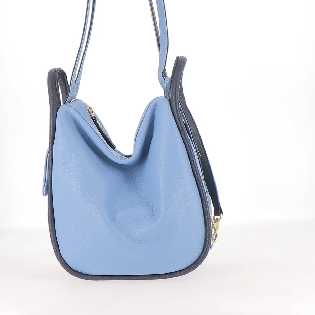 Partez à l’aventure près de chez vous ou de l’autre bout du monde avec notre sac à main ou sac à dos à en cuir grainée chic et pratique. Ce sac polyvalent est bicolore en taupe et marine se transforme en sac à dos grâce à ses bretelles amovibles et vous accompagne dans tous vos sorties. Son système de bandoulière permet de le porter soit à dos soit en bandoulière. Ce sac bicolore est spacieux et fonctionnel, avec ses 3 compartiments, il vous permettra d’organiser vos affaires. La poche extérieure permet d’accéder facilement aux objets essentiels : les clés et les titres de transport. Ce sac à dos ou sac à main deviendra votre sac préféré et s’accordera avec tous vos looks.