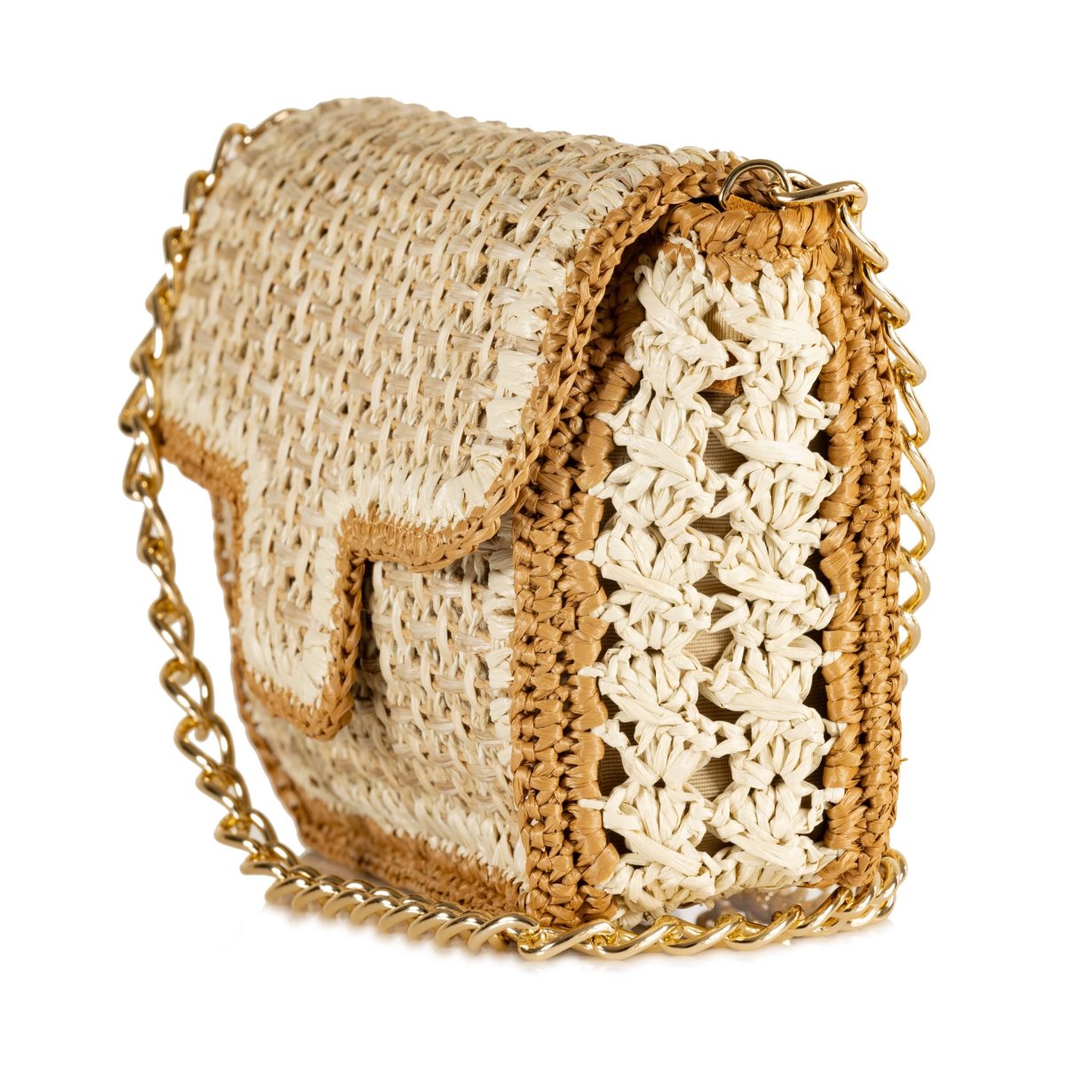 Sac à main Sophia en maille tressée robuste, allie légèreté et durabilité, idéal pour vous accompagner aussi bien en bord de mer qu’en ville. Son tissage unique évoque l’authenticité de la maroquinerie, Pratique et spacieux, il accueille aisément vos effet personnels. Sa lanière en métal ajoute une touche d’élégance moderne, permettant un porté épaule confortable.