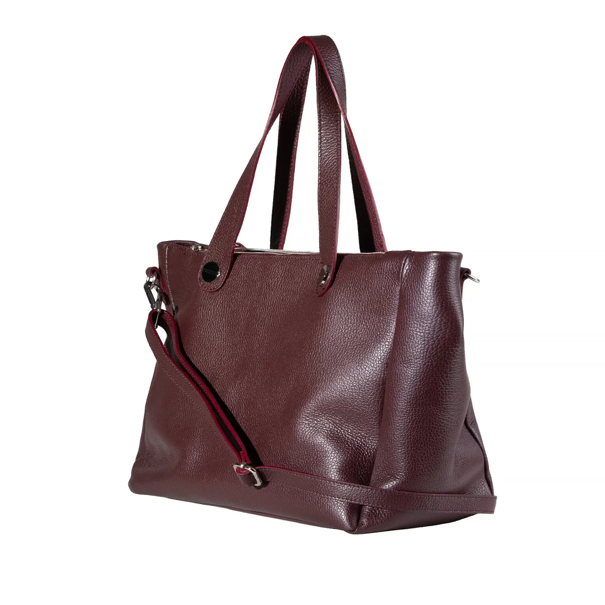 Le sac cabas en cuir grainé bordeaux La Bagagerie, pensé pour les femmes actives, il allie praticité, confort et style dans un format généreux, parfait pour accompagner vos journées chargées.