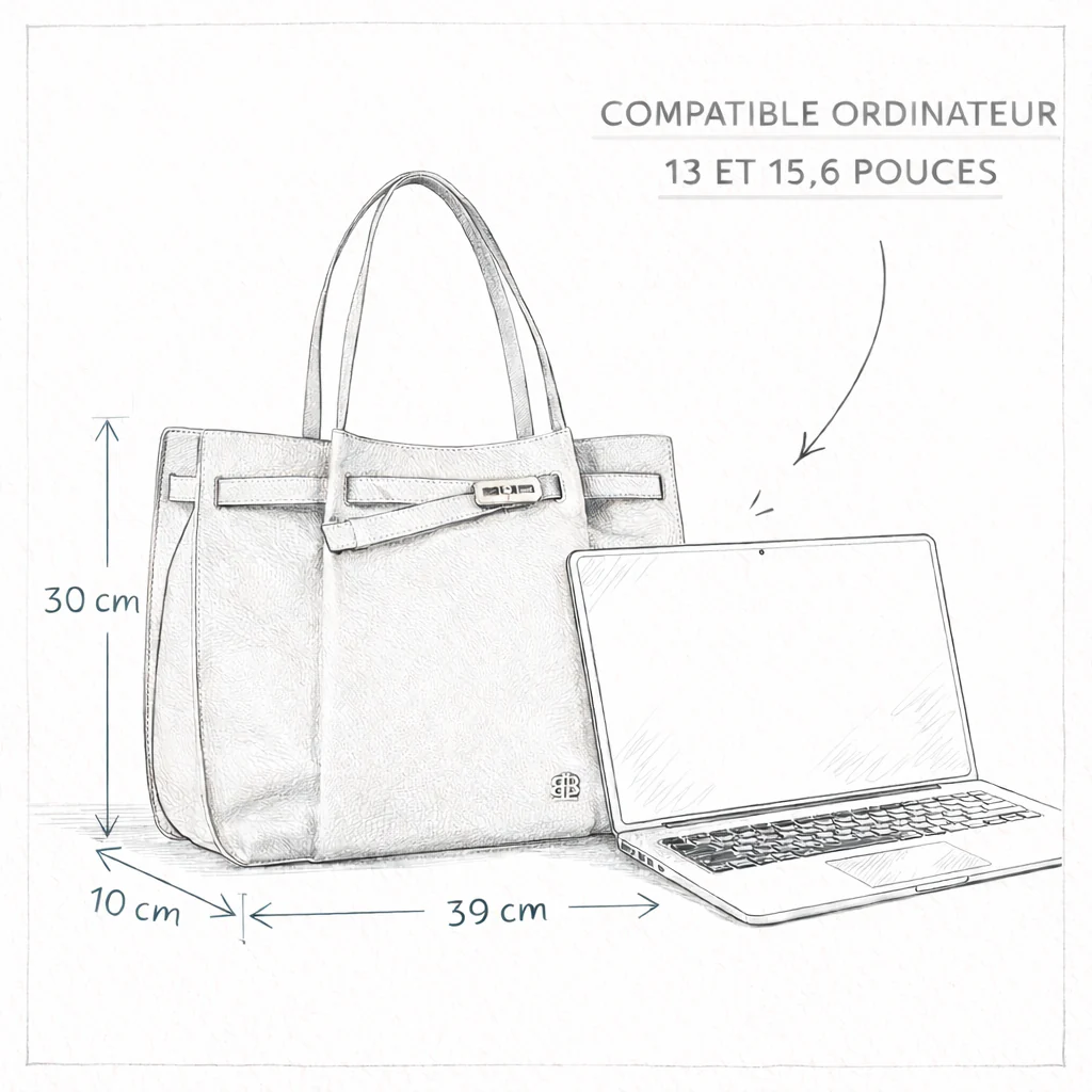 Ce sac en cuir de vachette format XL offre un espace généreux pensé pour les femmes actives qui ont besoin d’un volume confortable sans sacrifier l’élégance. Son design structuré s’organise autour de trois grands compartiments, dont un central zippé idéal pour sécuriser documents, tablette, accessoires ou effets personnels. Les deux compartiments latéraux à boutons pression apportent un accès rapide et une organisation intuitive.