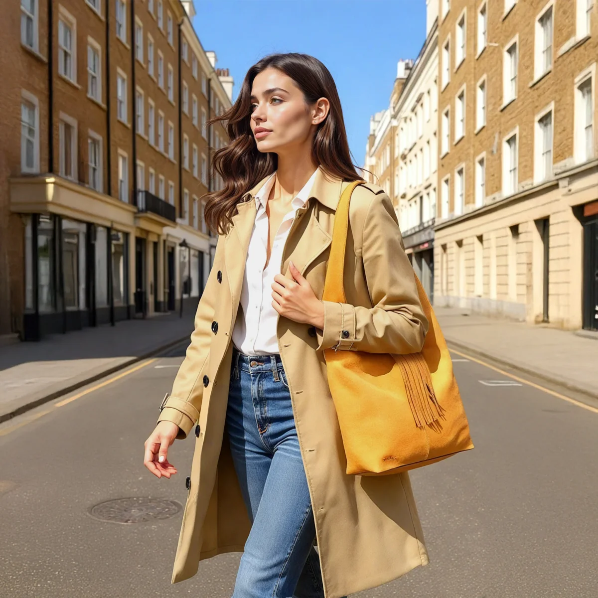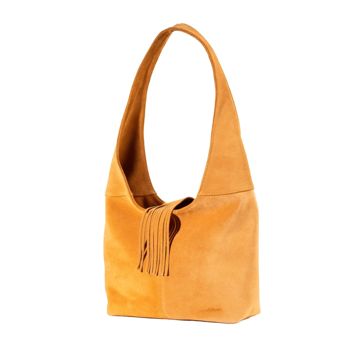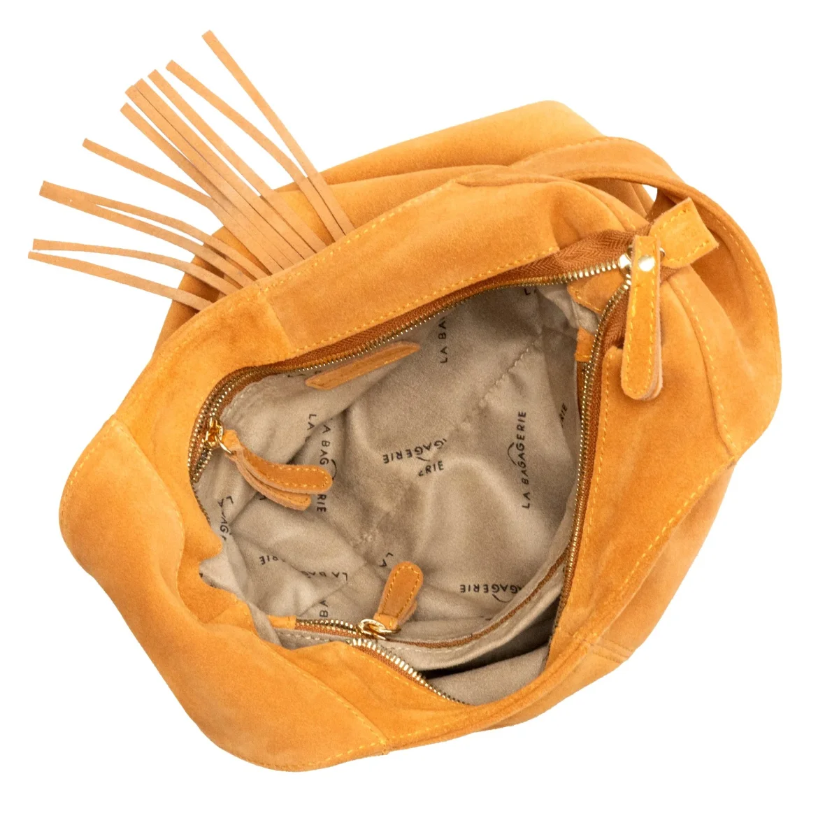 Ce sac orange séduit par son allure naturelle et sa texture douce. Sa forme souple est idéale pour un porté épaule confortable et décontracté. Le rabat à franges lui donne une touche bohème chic, tandis que l’intérieur spacieux doublé en tissu siglé offre plusieurs rangements, dont une poche zippée. Parfait pour celles qui recherchent un sac à la fois tendance et fonctionnel, il accompagnera tous vos looks du quotidien.