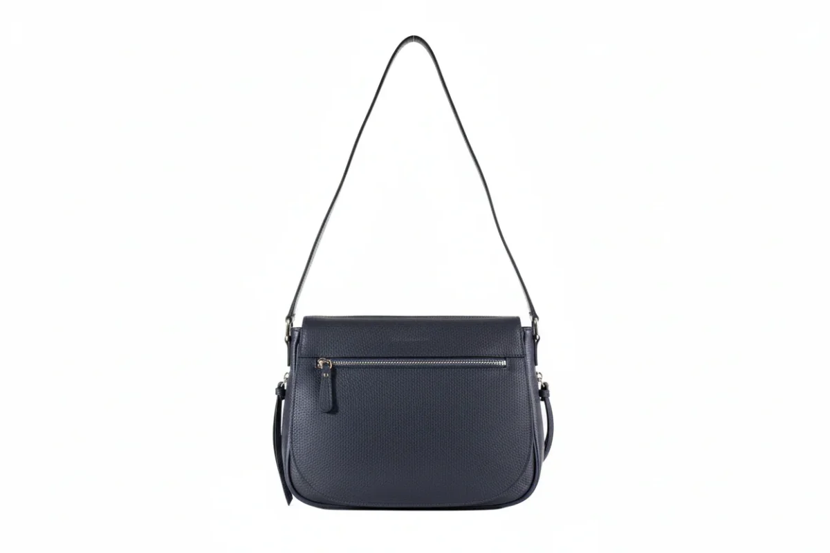 Sac bandoulière en cuir grainé marine La Bagagerie, un accessoire qui allie profondeur et sophistication. Sa teinte intense et sa silhouette arrondie lui confèrent une allure intemporelle, idéale pour apporter une note élégante à vos tenues quotidiennes comme à vos looks plus habillés.