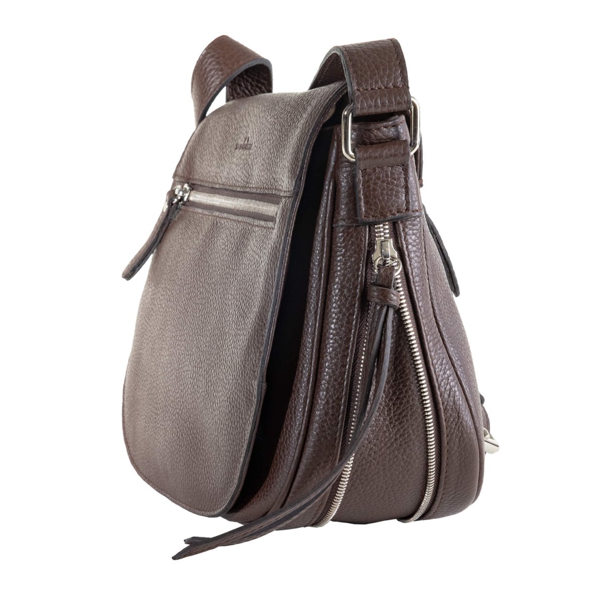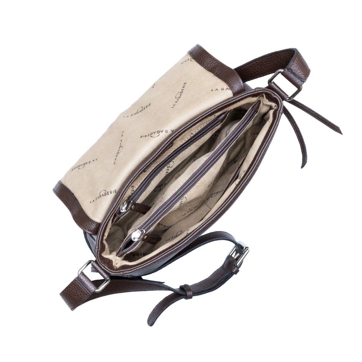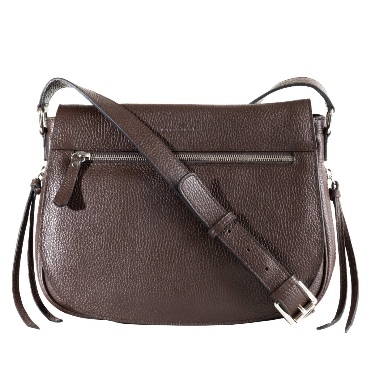 Sac bandoulière en cuir grainé marron foncé La Bagagerie, un accessoire qui allie profondeur et sophistication. Sa teinte intense et sa silhouette arrondie lui confèrent une allure intemporelle, idéale pour apporter une note élégante à vos tenues quotidiennes comme à vos looks plus habillés.
