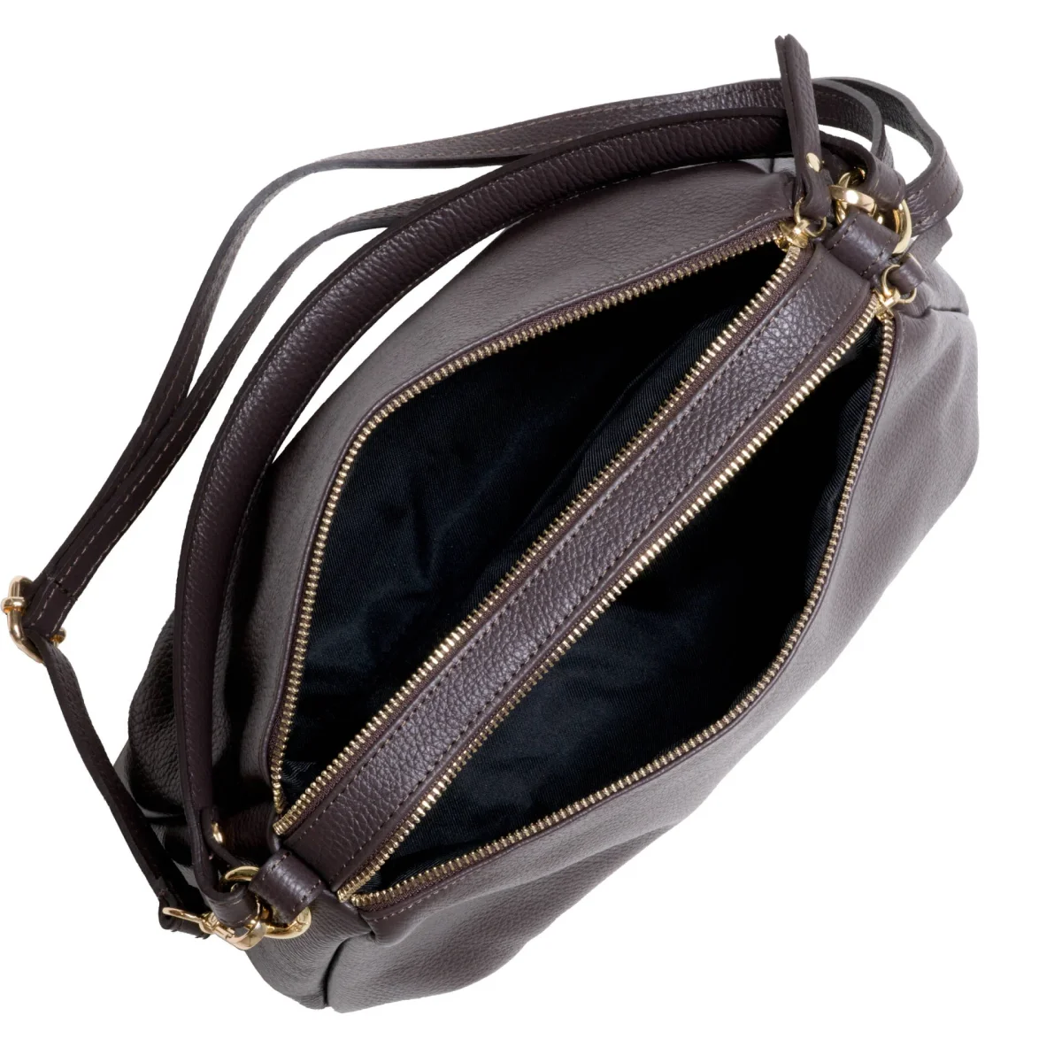 Apportez une touche de sophistication à votre look avec ce sac en cuir grainé, souple et raffiné. Son format compact est parfait pour accueillir vos essentiels du quotidien tout en gardant une allure chic. Il se porte à l’épaule ou en crossbody grâce à sa bandoulière ajustable et amovible. Fermeture zippée dorée et finitions métalliques élégantes soulignent son design intemporel. Polyvalent et confortable, il s’adapte à toutes les occasions, du bureau à vos sorties du soir. Un must-have pour un vestiaire féminin moderne.
