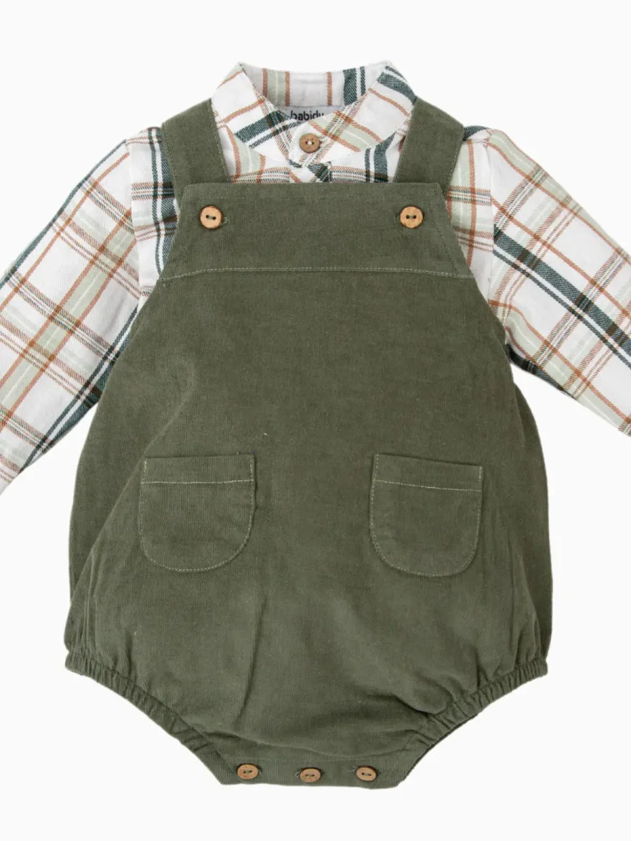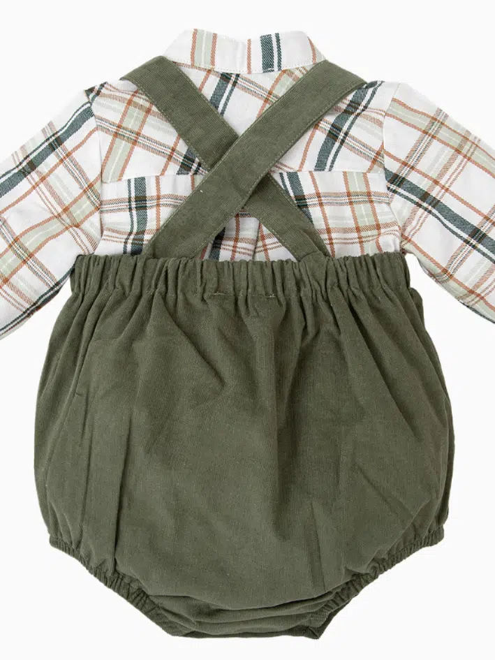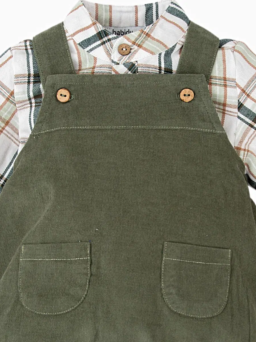 La salopette bébé en velours verte se marie à merveille avec la chemise bébé col mao à carreaux, créant une tenue complète et stylée. L’association de la salopette en velours et de la chemise à carreaux donne un look intemporel, élégant et plein de caractère. Que ce soit pour une promenade en forêt, une journée au parc ou une réunion de famille, cette tenue fera sensation.