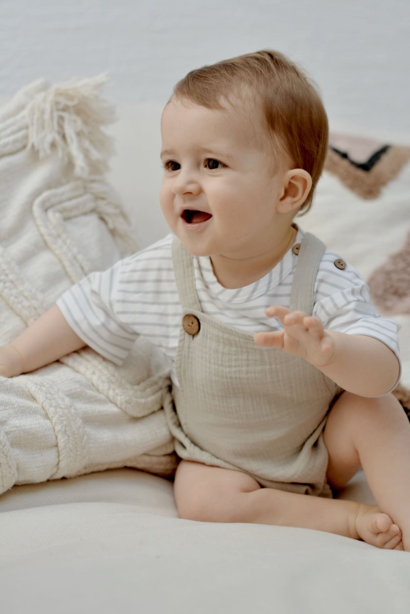 Cette salopette en mousseline de la marque Eli and Nev est la tenue parfaite pour bébé en été ! En plus d’être en 100% coton bio, elle est légère et ample donc très confortable pour bébé. Les petits boutons en noix de coco apporte une petite touche d’originalité !