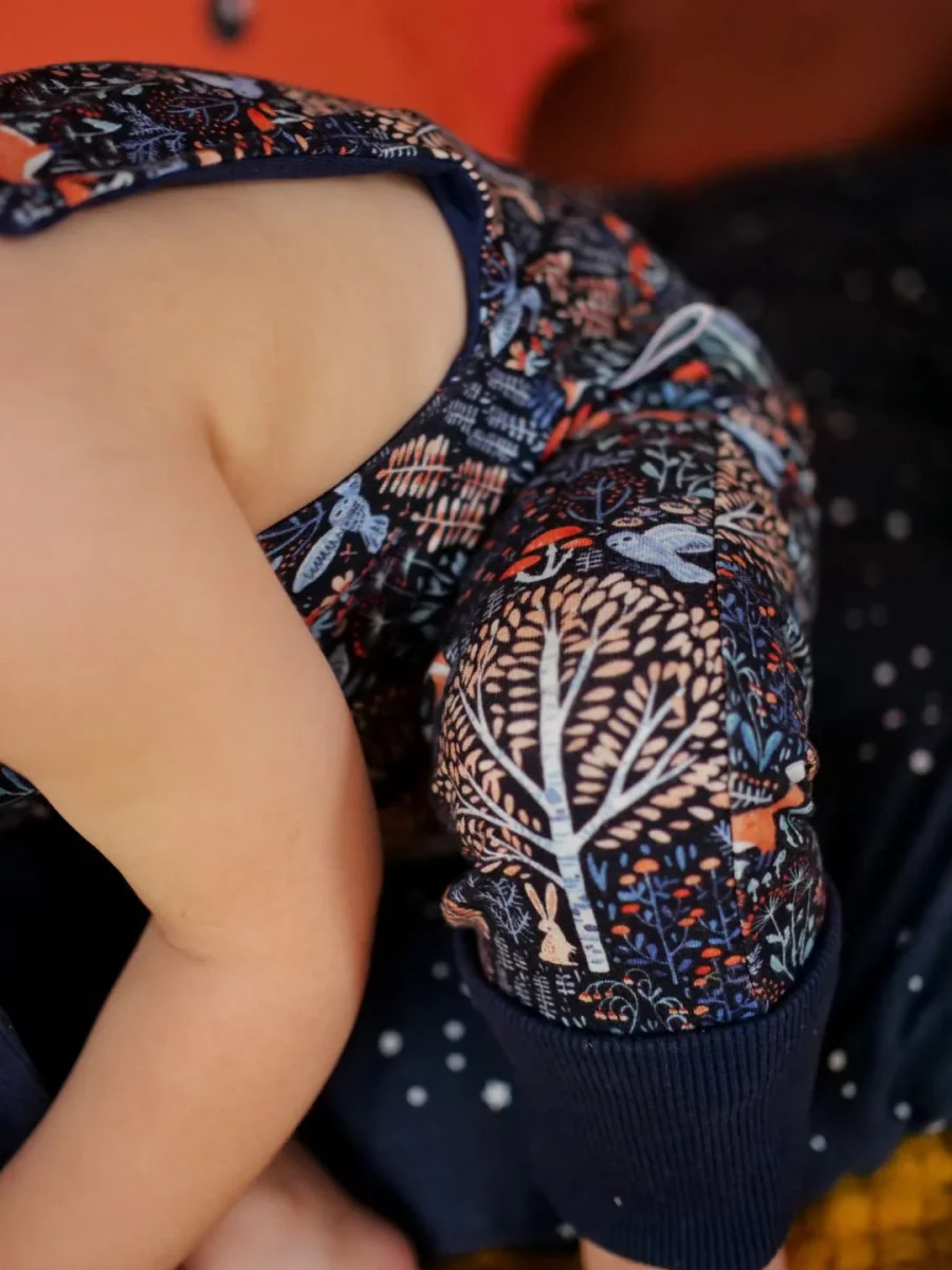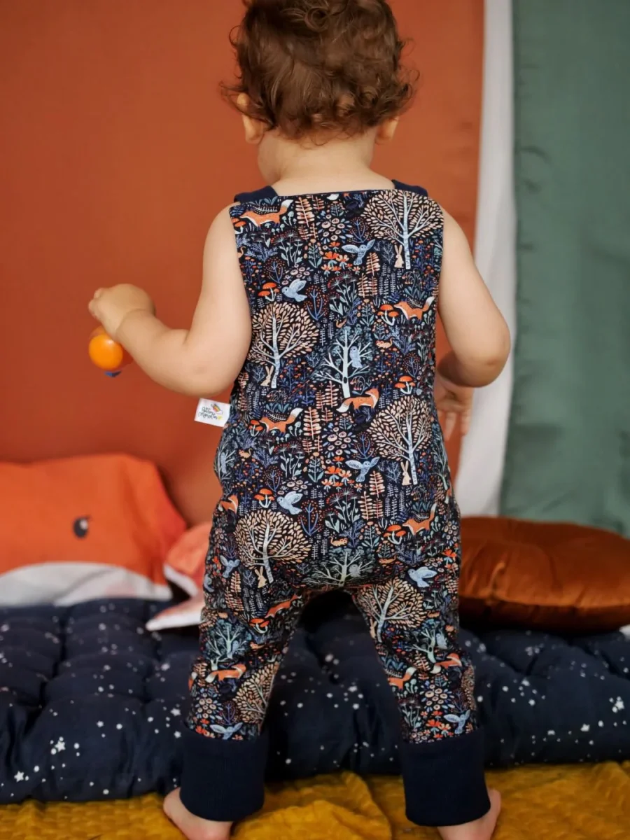 Elle est très couvrante, jusqu’en haut du dos afin de garder vos petits Amours au chaud et être du plus bel effet en mettant en avant la beauté du tissu. Les rangées de boutons pressions permettent un ajustement à la taille de votre enfant et l’élastique des chevilles peut se déplier et se replier en suivant l’évolution de votre enfant