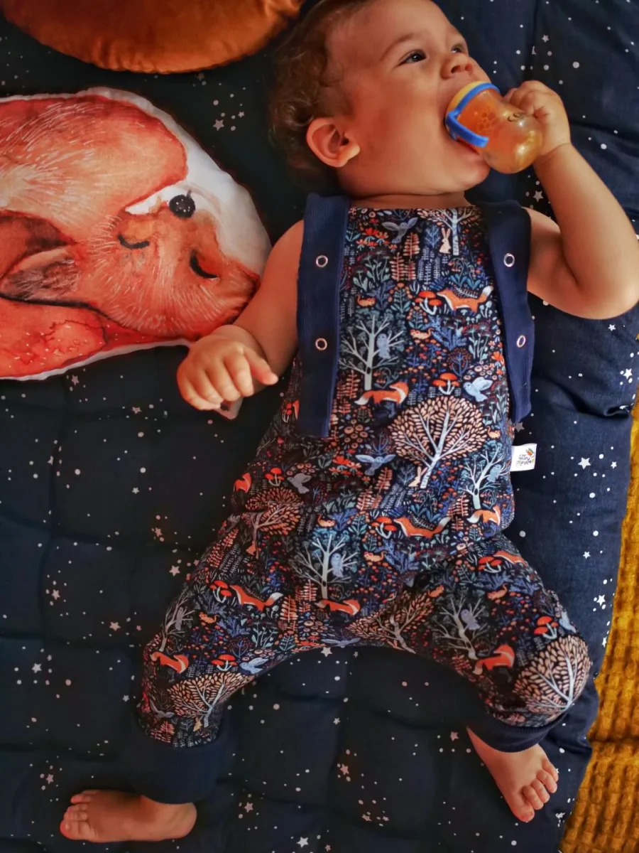 🚀 Les salopettes évolutives Petites Menottes peuvent s’enfiler dans les deux sens. Les bretelles ont trois rangées de pression, une fois réglée à la morphologie de votre petit cœur, la salopette s’enfile, très rapidement, comme un sac.