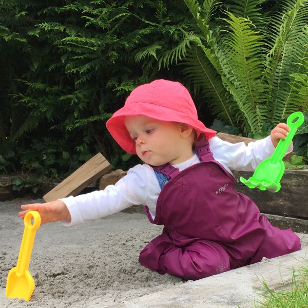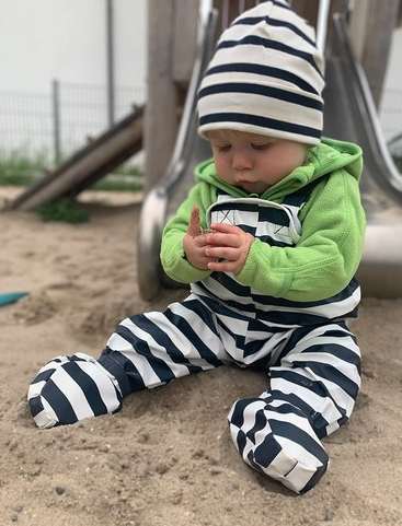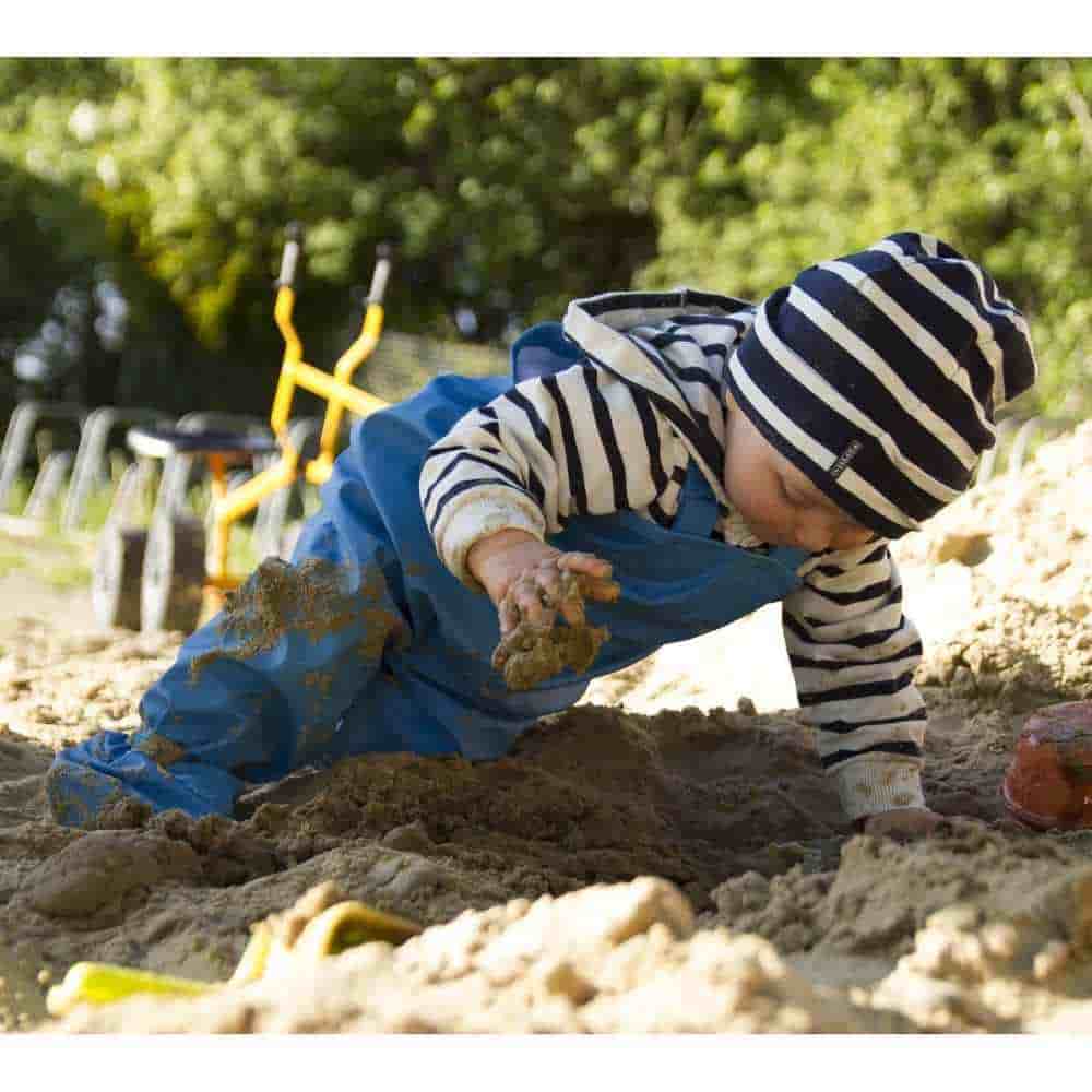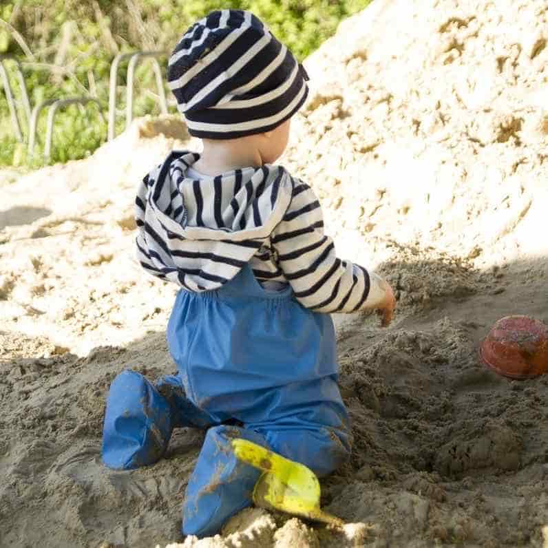Très appréciable pour laisser bébé explorer, même dans le bas à sable ou l’herbe humide. Il reste au sec et vous vous épargnez des lessives.