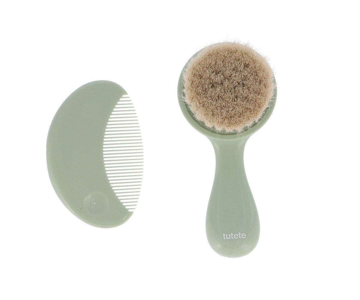 On craque pour ce joli Set composé d’une brosse et d’un peigne pour bébé en poils naturels ! Avec sa joli couleur verte toute douce, il s’accordera dans la déco de chambre de bébé !