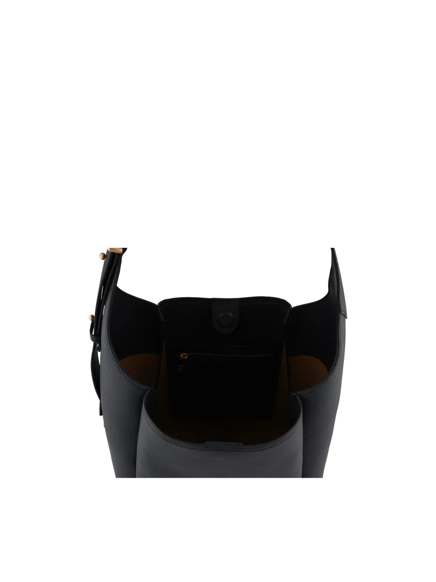 Conçu dans un cuir souple mais ferme, il épouse un équilibre subtil entre modernité et héritage classique. Les lignes épurées du sac mettent en valeur son caractère minimaliste, rehaussé par des détails élégants tels qu’une poignée en cuir ajustée, pensée pour un porté à la fois confortable et sophistiqué. La finition dorée discrète ajoute une touche de lumière.