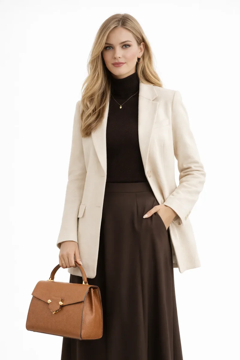Le sac présente une silhouette structurée et moderne, avec des lignes douces et arrondies. Sa forme classique et contemporaine en fait un accessoire intemporel, idéal pour toutes les occasions.
