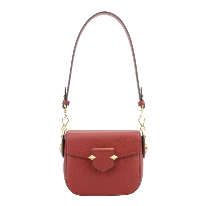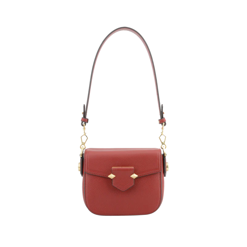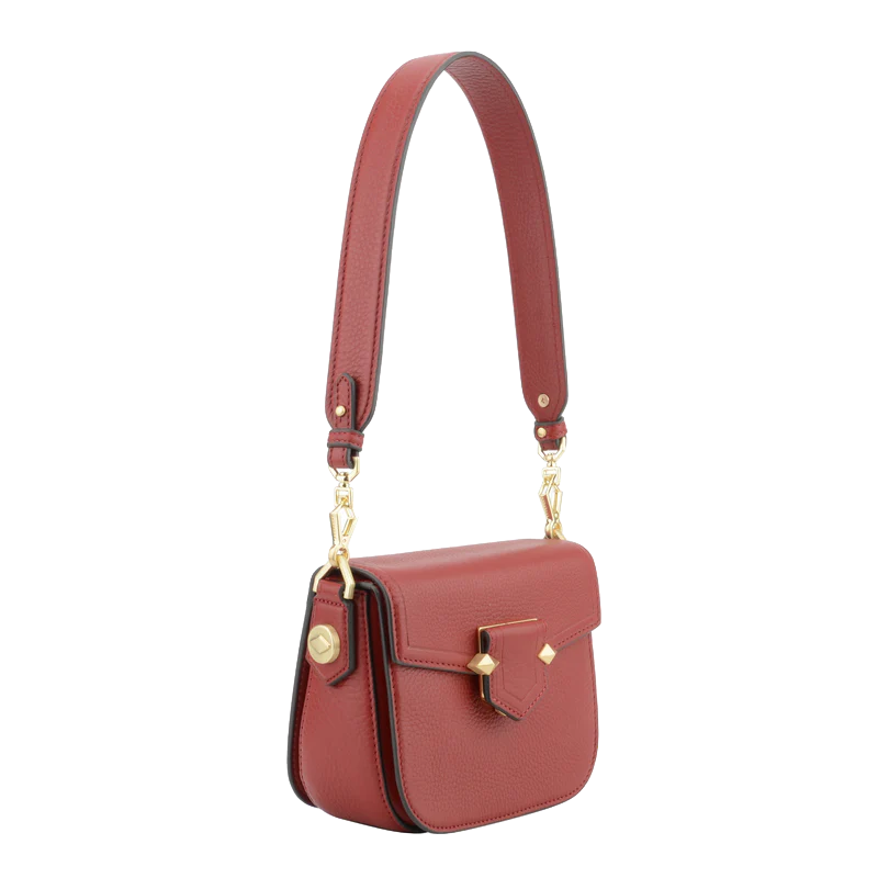 Fabriqué en cuir de vachette texturé, il offre une sensation tactile agréable et un aspect luxueux. Sa couleur rouge profond confère une allure moderne et sophistiquée, tandis que le joli fermoir en métal doré ajoute une touche de brillance.