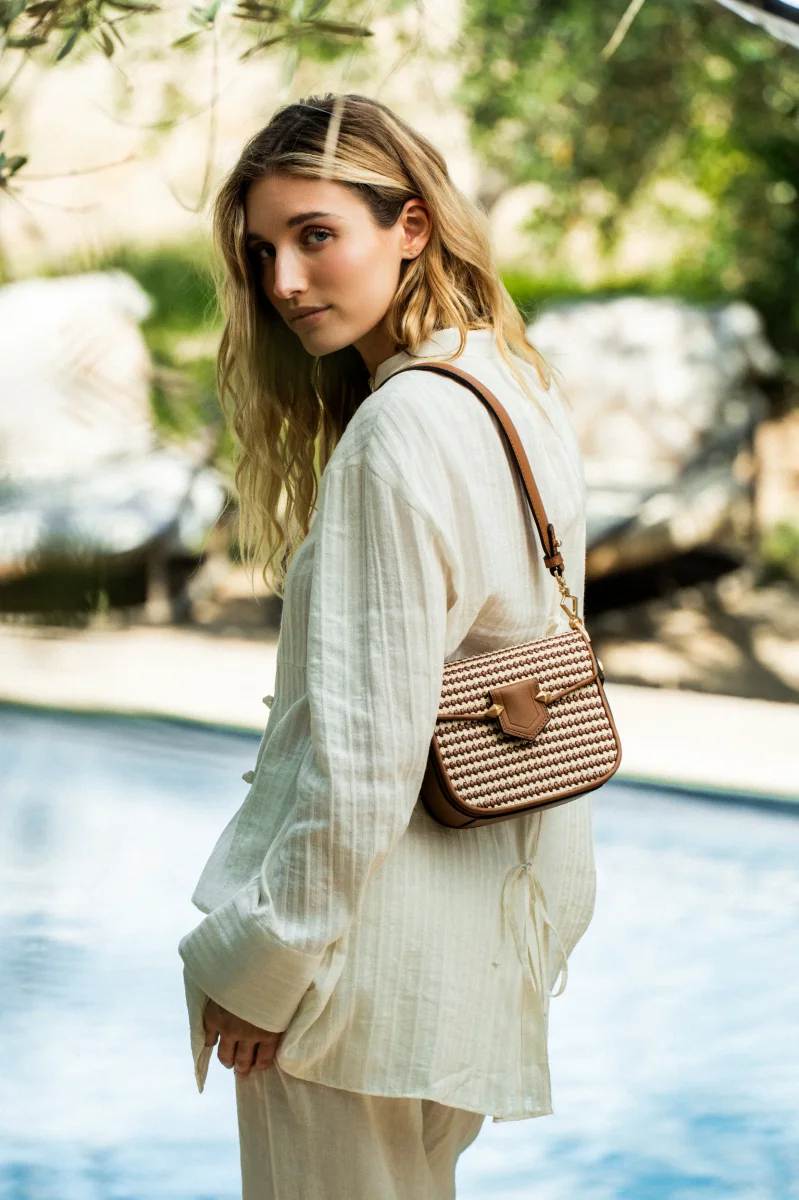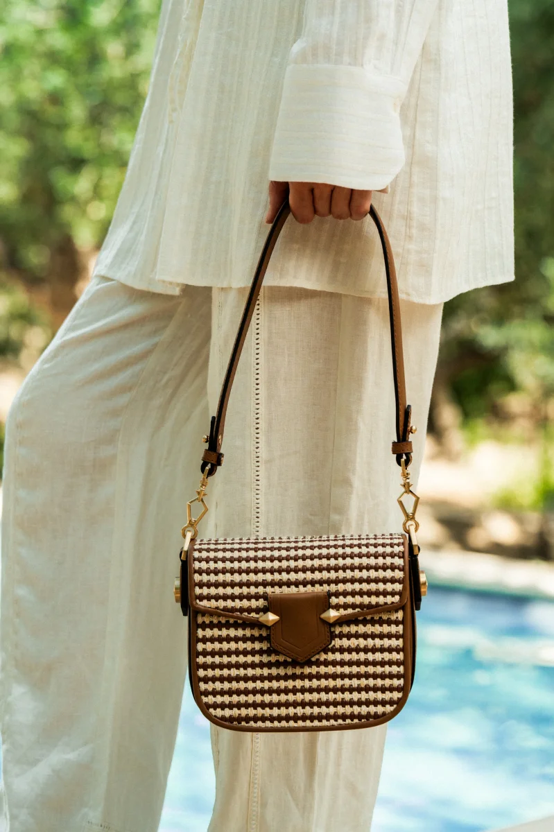 Alliance subtile de matières et de savoir-faire, le sac SEVRES TRESSÉ de Pourchet séduit par son jeu de textures et son esprit résolument chic. Son tressage en coton, délicatement travaillé, contraste harmonieusement avec les finitions en cuir de vachette, pour un rendu à la fois moderne et raffiné.