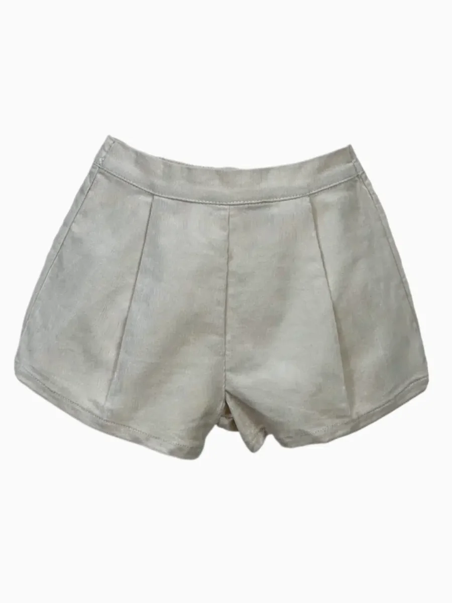 Ce short, confectionné en Espagne avec une attention particulière aux détails, est réalisé dans un tissu de haute qualité qui assure douceur et durabilité. La couleur beige unie apporte une touche de sophistication intemporelle, faisant de ce short un choix polyvalent pour diverses occasions, des sorties décontractées aux événements spéciaux.