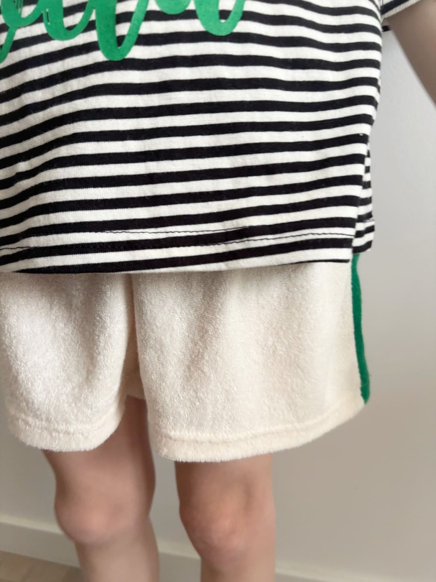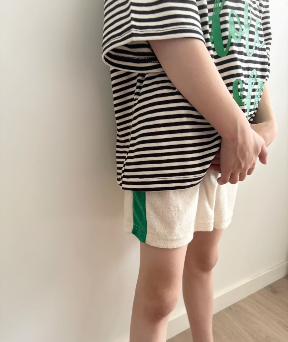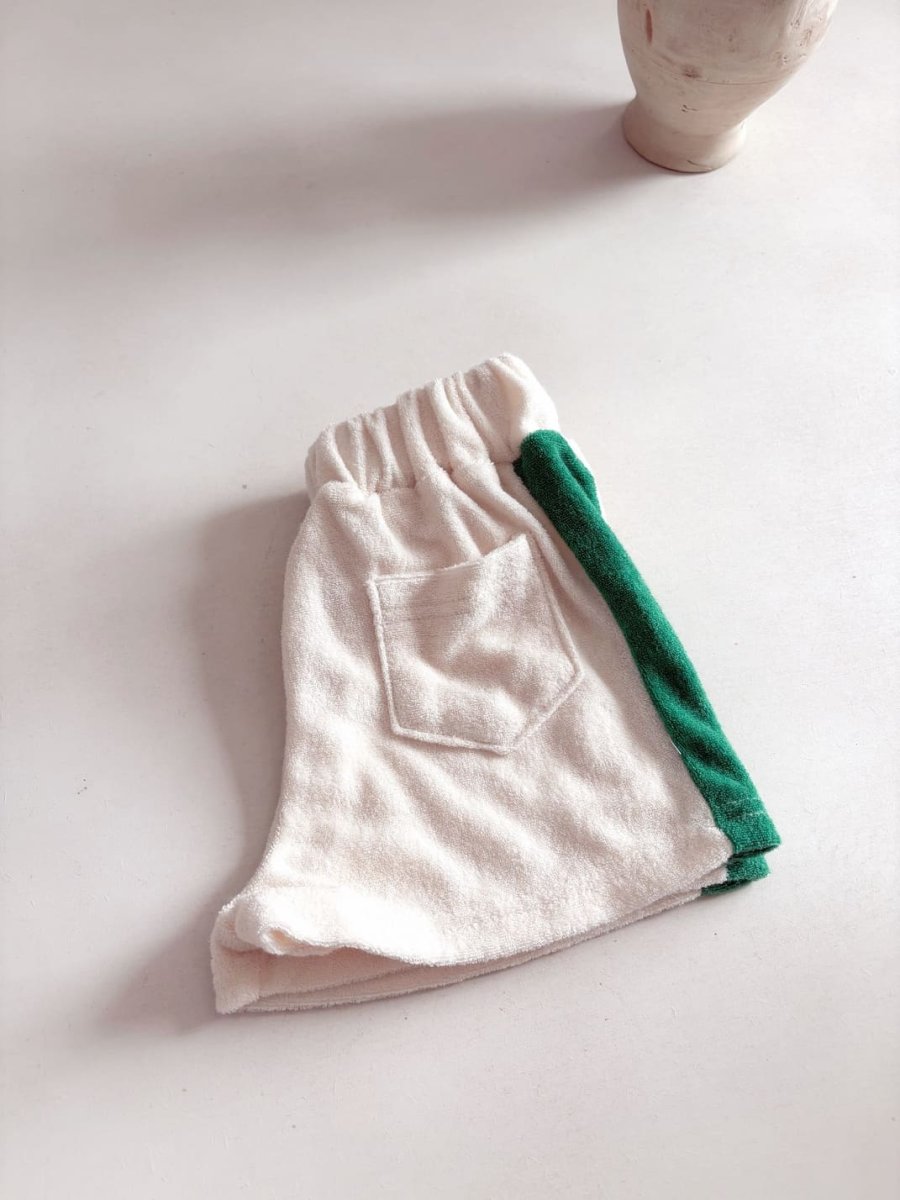 On craque pour le style de short en éponge enfant bi-colore, tout doux et souple pour un maximum de confort ! Guide tailles S(-90cm) M(90-100cm) L(100-110cm) XL(110-120cm) 2XL(120-125cm)