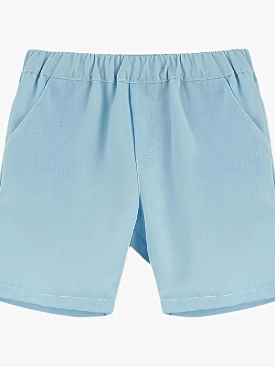 Short garçon en coton et lin – Bleu ciel
