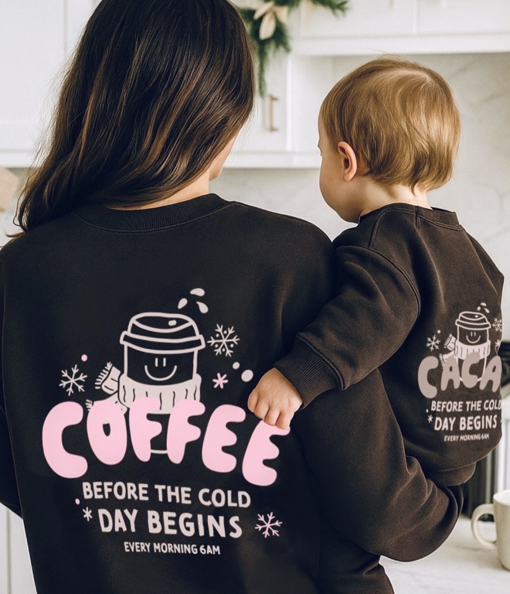 Craquez pour ce sweat oversize et décontracté, en duo avec votre kids ! Super doux, confortable, il est aussi très tendance avec son imprimé « Cacao », un clin d’oeil aux matins pressés ! Conseils tailles : Taille S/M très oversize convient plutôt du M à L, nous vous le conseillons plutôt si vous mesurez plus d’1m65. Mesures du sweat : Longueur 74 cm, Largeur 65 cm et longueur des manches : 79 cm.
