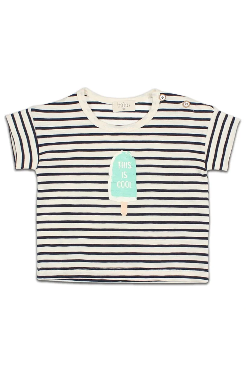 T-Shirt à Rayures avec Motif Glace Bleu Marine