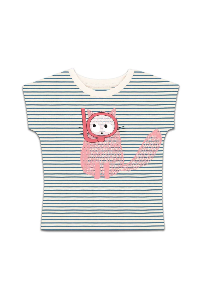 T-Shirt Chat Plongeur Rayures Bleues