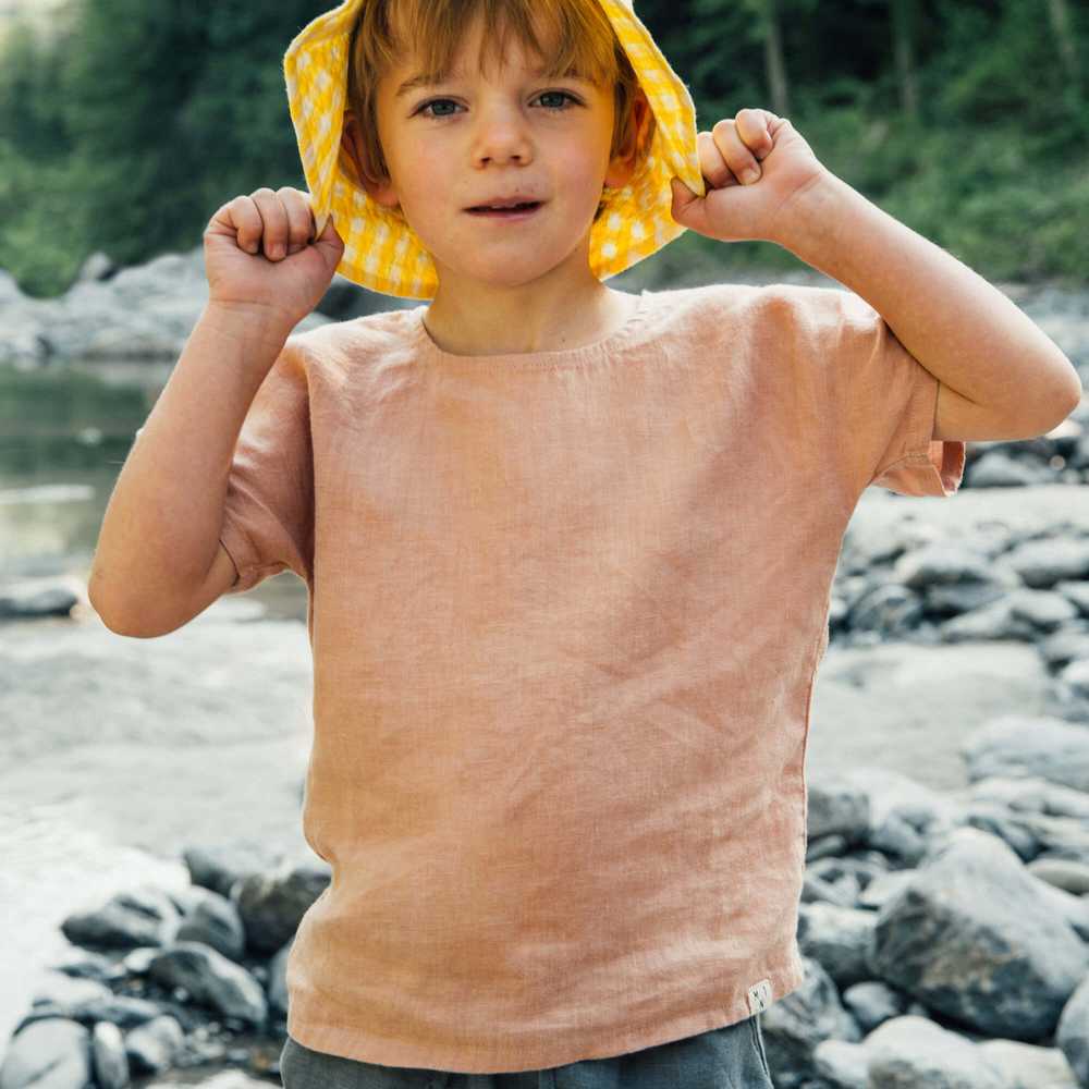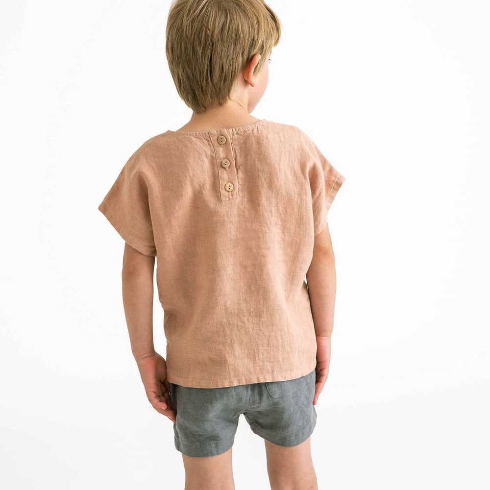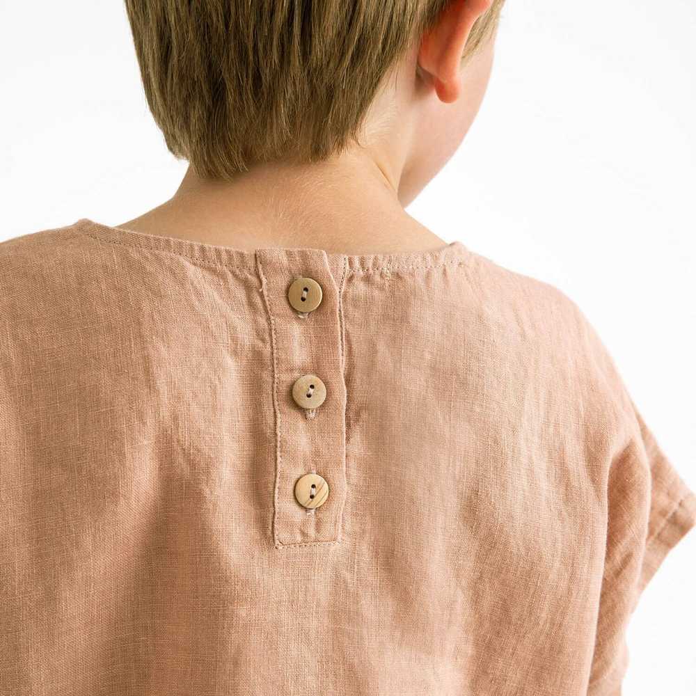T-shirt en lin pour enfant de la marque autrichienne Matona. Un vêtement mixte manches courtes intemporel et écoresponsable : le lin est écologique, confortable et durable, mais aussi très facile d’entretien ! Ouverture dans le haut du dos avec des boutons en bois, facile à enfiler, et coupe plutôt ample pour un grand confort même par forte chaleur.