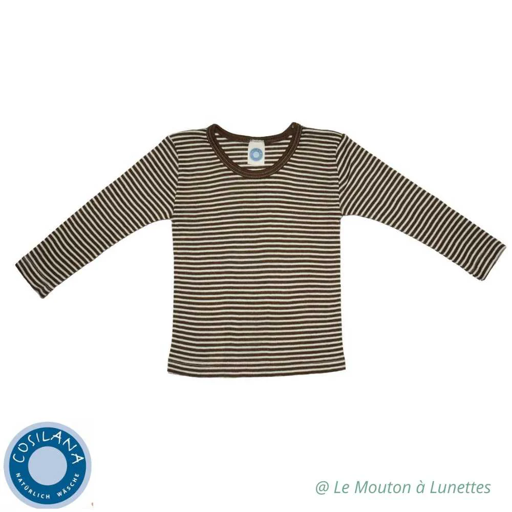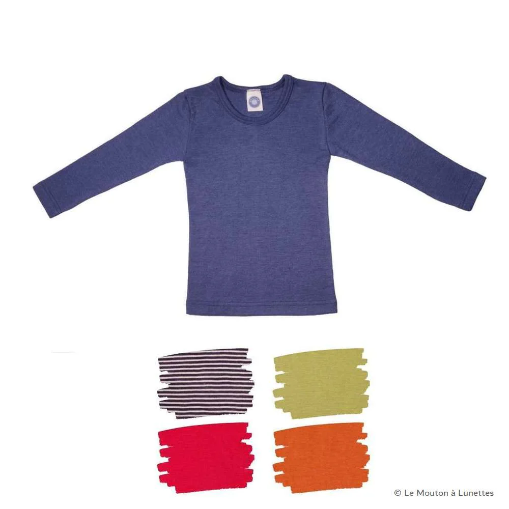 T-shirt enfant en laine mérinos et soie de la marque allemande Cosilana : un essentiel en toutes saisons, car thermorégulateur. Ici la version manches longues.