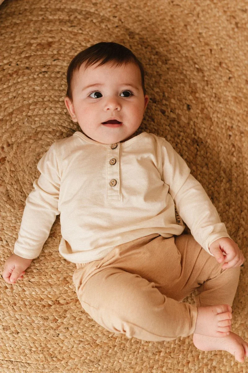 Le tee-shirt manche longue “Mao” est l’indispensable du vestiaire de bébé ! Avec son look sophistiqué, il se porte en journée avec un pantalon ou legging ou encore en pyjama. Il est en jersey de coton 100% biologique,dont la fibre est naturellement teintée, de plus, les boutons sont en véritable noix de coco ainsi aucun produit chimique. Il est doux, confortable et aussi très pratique avec son ouverture à l’avant pour faciliter le passage de la tête. Ce modèle s’associe parfaitement avec le legging “Léonce” qui est dans la même matière.