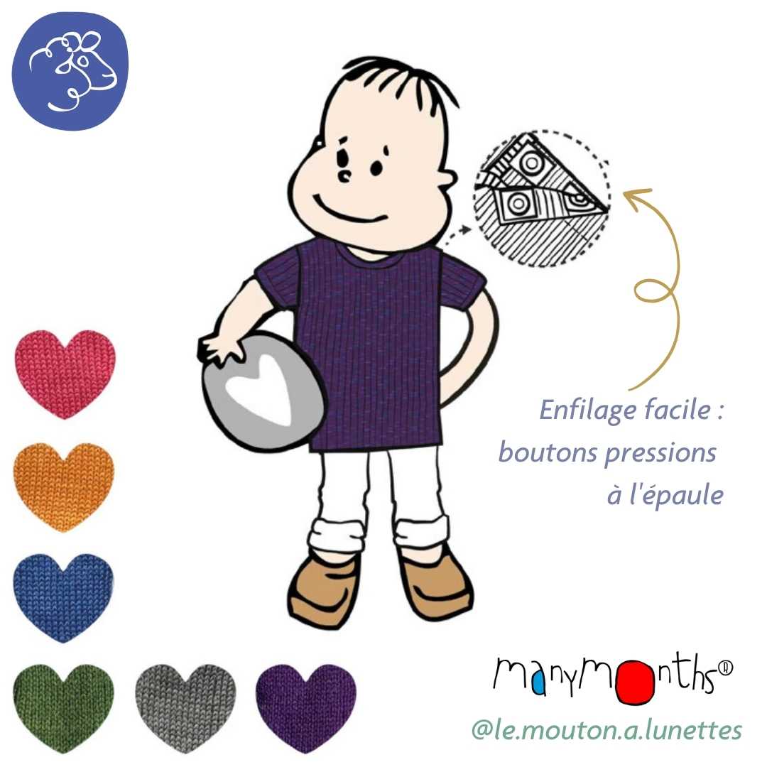 Enfin de retour ! La version manches courtes du t-shirt mérinos Manymonths est un grand classique basique disponible à nouveau dans de nombreuses couleurs. Détail pratique : il s’ouvre sur une épaule avec des boutons pressions discrets, pour un enfilage très facile.