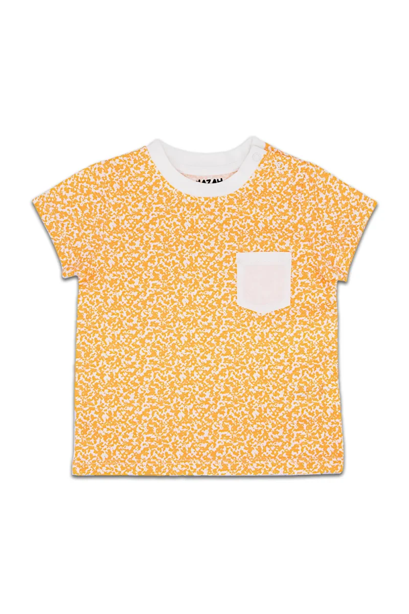 Tee-shirt manches courtes à ouverture latérale jusqu’à 2 ans pour un enfilage plus facile et poche contrastée.