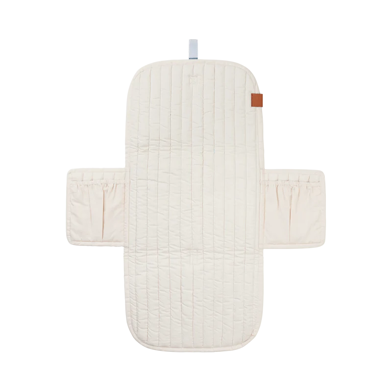 Le matelas à langer matelassé à emporter de Fabelab est très joli et pratique. Il contient deux poches intérieures pour ranger le nécessaire pour le change et se ferme facilement avec du velcro. Le matelas à langer se glisse parfaitement dans votre sac à langer lorsque vous devez l’emporter avec vous. Il est fabriqué en coton 100 % biologique et garni de polyester recyclé.