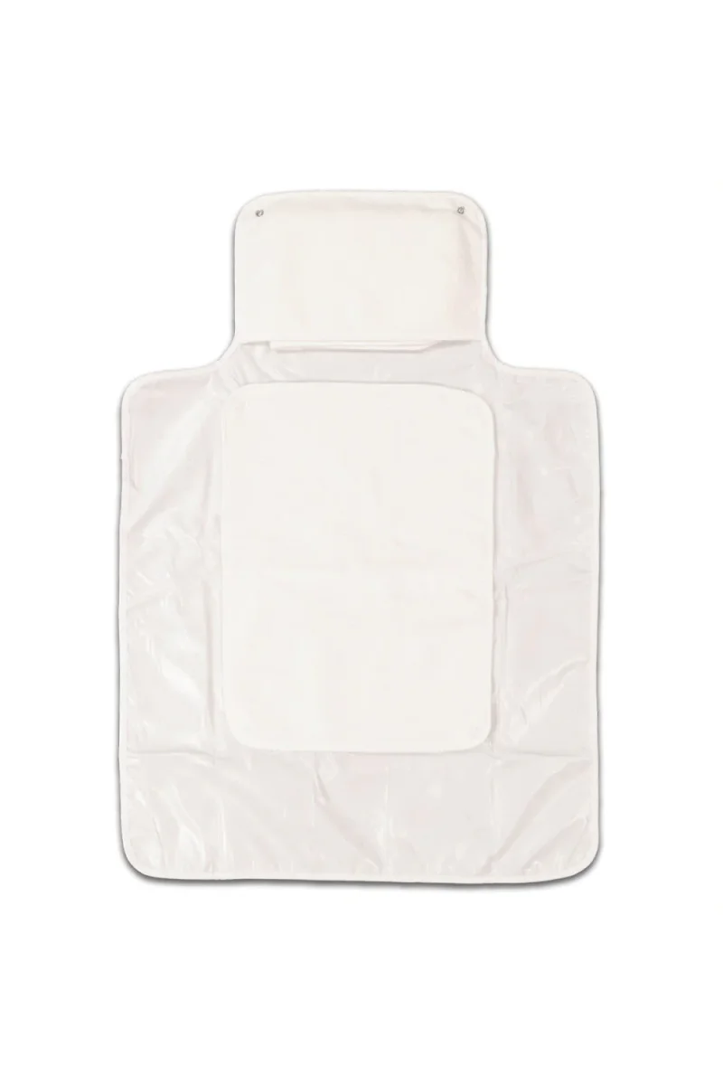 La partie plastifiée est pratique car lavable, mais nous avons aussi pensé au confort de bébé, qui posera sa tête sur la partie doublée d’éponge.