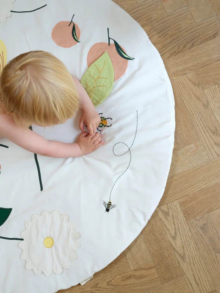 Bébé va adorer découvrir le monde sur ce doux tapis d’activités. Parfait pour stimuler ses sens en toute sécurité, les différentes couleurs et matières de ce produit vont le captiver. Avec ses petites fleurs, fruits et insectes, place à la découverte et à des heures de jeux !