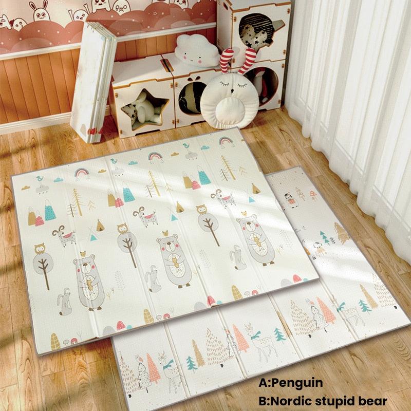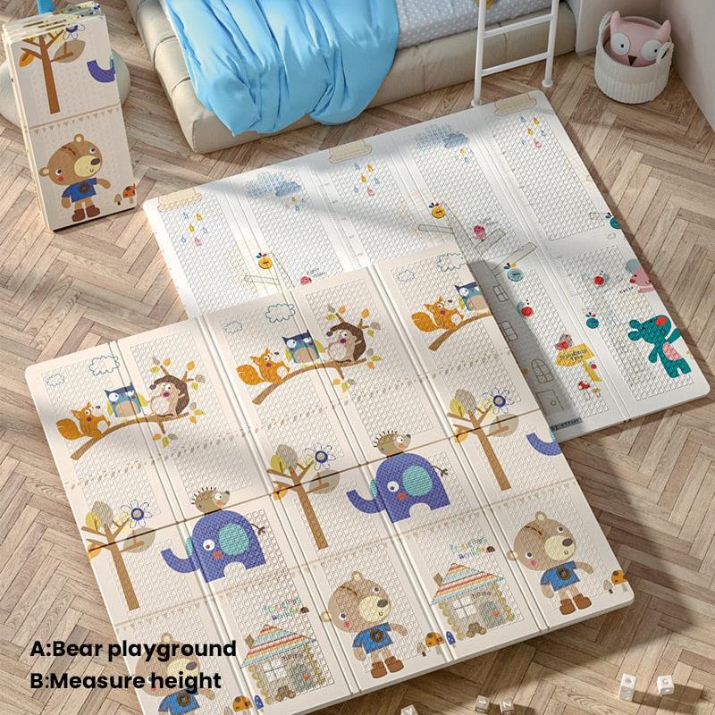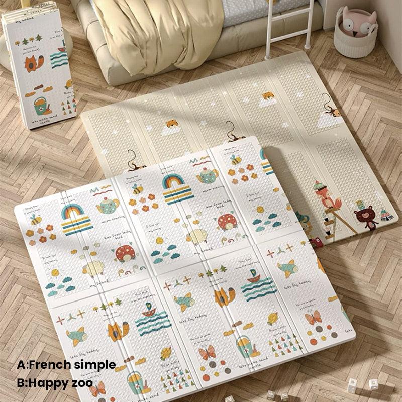 Ce tapis de jeu portable et pliable est fabriqué en mousse XPE, qui est douce, sûre et durable. Il est également facile à nettoyer. Il suffit de l’essuyer avec un chiffon humide. Le tapis est de couleur vive et présente des motifs amusants, ce qui le rend parfait pour stimuler les sens de votre bébé.