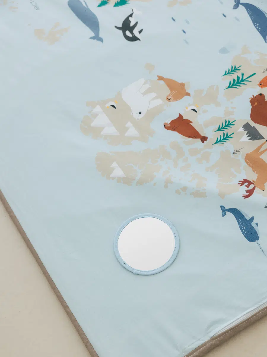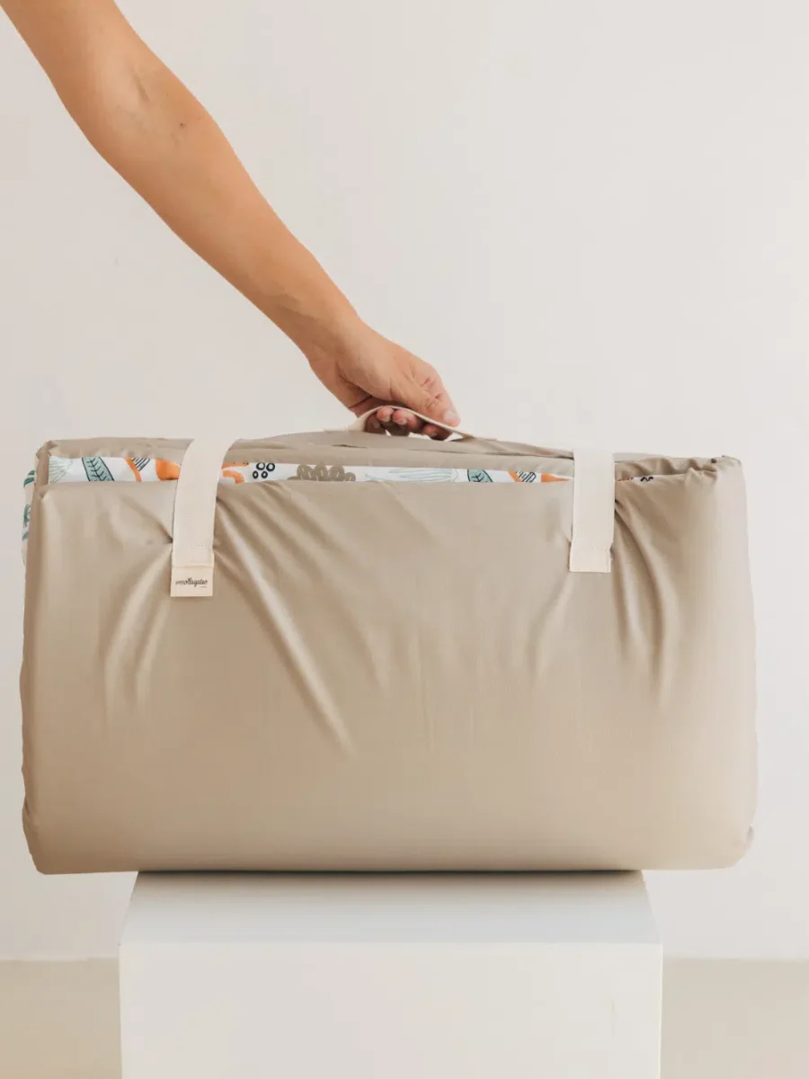 Pliable en quelques gestes, le tapis de motricité bébé se transforme en sac de transport ultra-pratique avec poignées en coton et fermeture velcro. Emmenez-le facilement chez les grands-parents, en week-end ou dans le jardin pour créer un cocon d’éveil partout où vous allez.