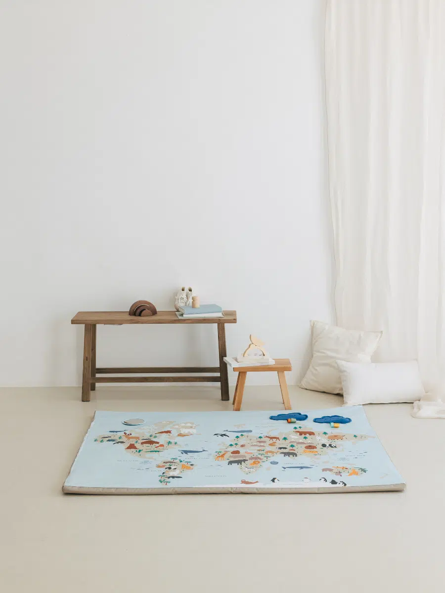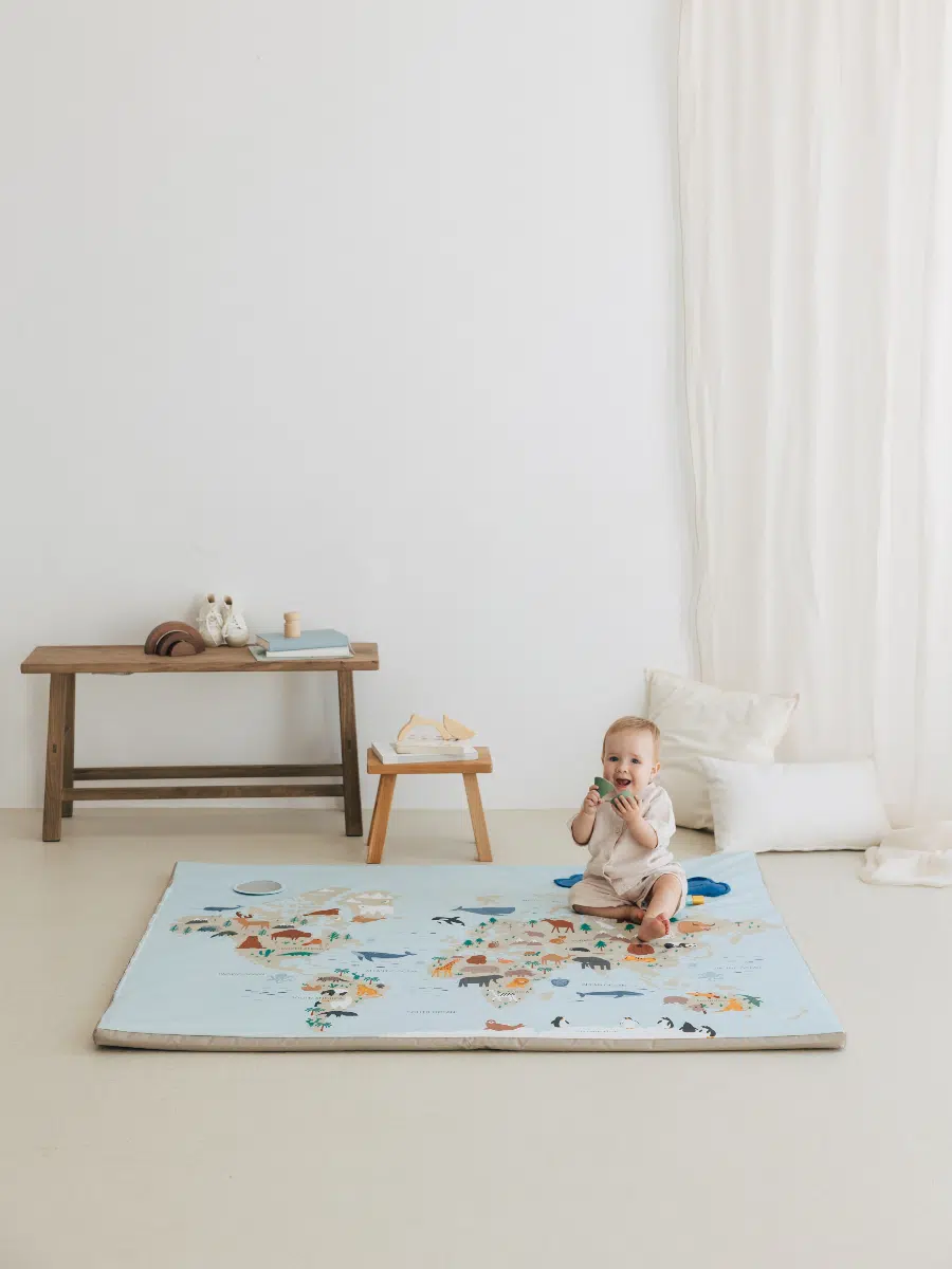 Offrez à votre bébé un espace d’éveil doux, sécurisé et inspirant avec notre tapis de motricité bébé Enrollagateo au motif carte du monde, conçu pour accompagner ses premières découvertes motrices tout en stimulant sa curiosité naturelle. Fabriqué en Espagne, ce tapis a été pensé dans ses moindres détails pour offrir un maximum de confort, de praticité et de soutien au quotidien.