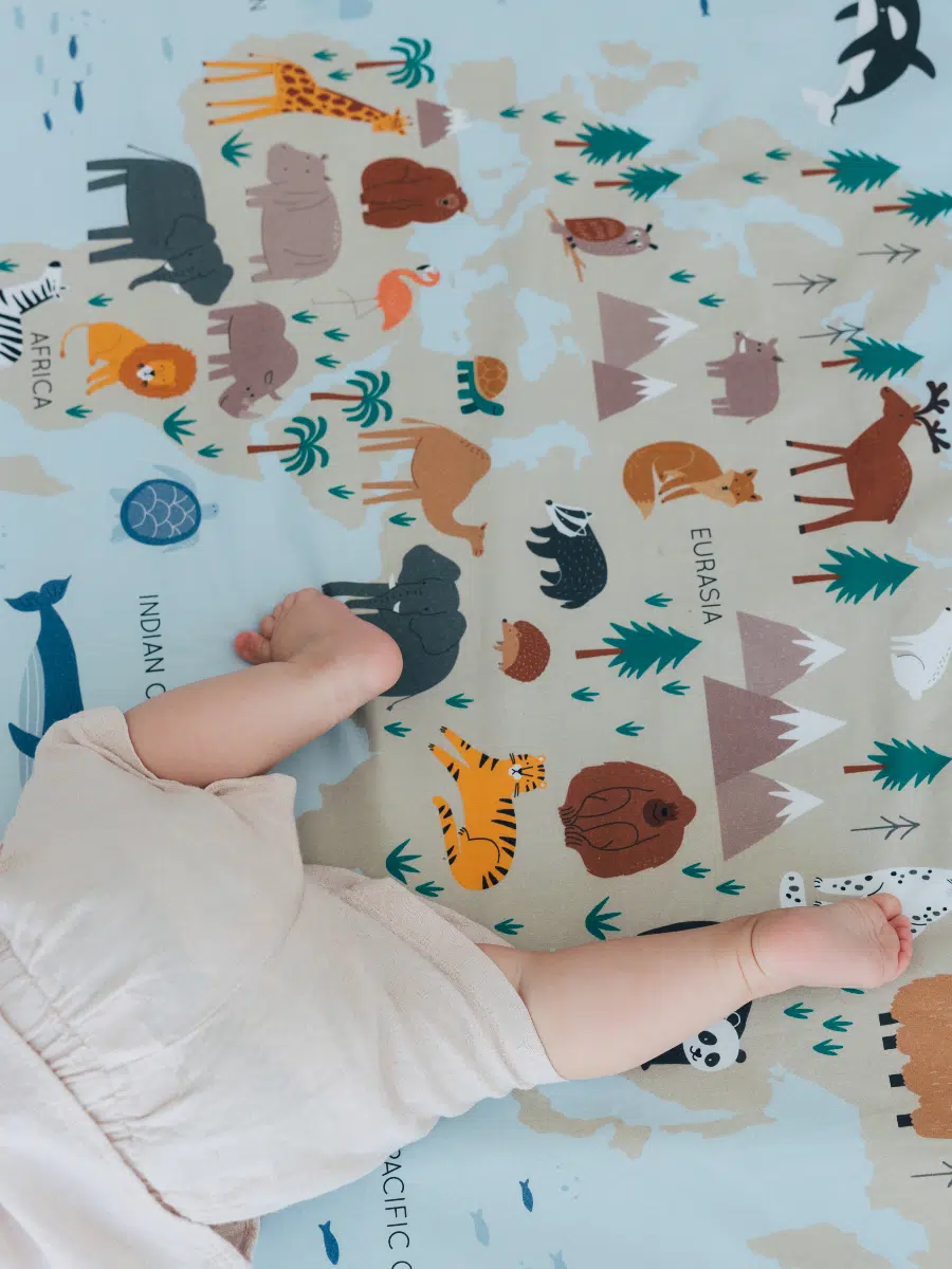 Tapis de motricité bébé motif carte du monde – 110x140cm
