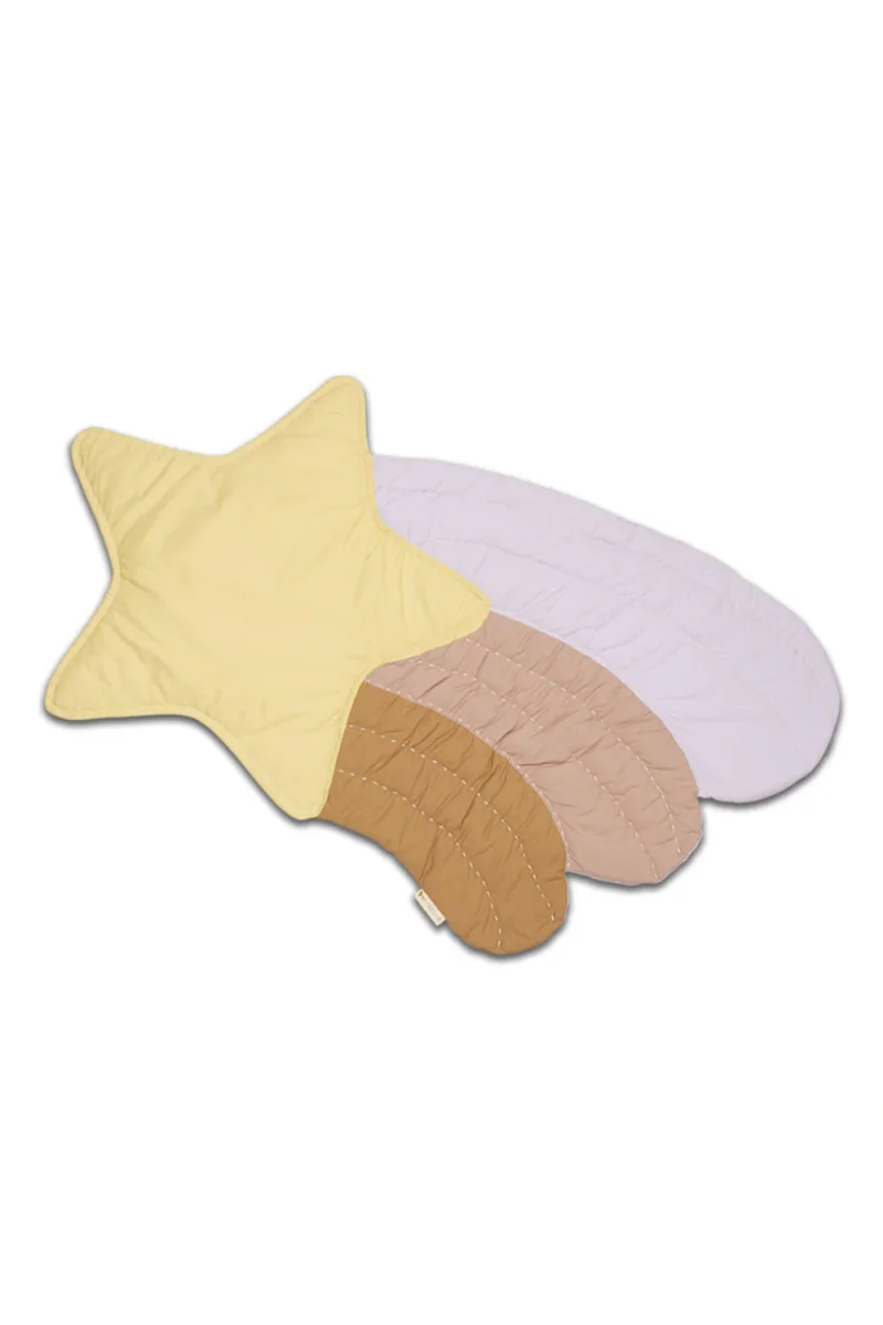 Le tapis matelassé Etoile Filante, aux couleurs pastel, va faire voyager la chambre de Bébé. Utilisez-la comme un tapis , une couverture douce pour bébé, une couverture de lit décorative, ou accrochez-la au mur comme une décoration. Le tapis / couverture est d’ailleurs livrée avec des boucles pratiques pour la suspendre.