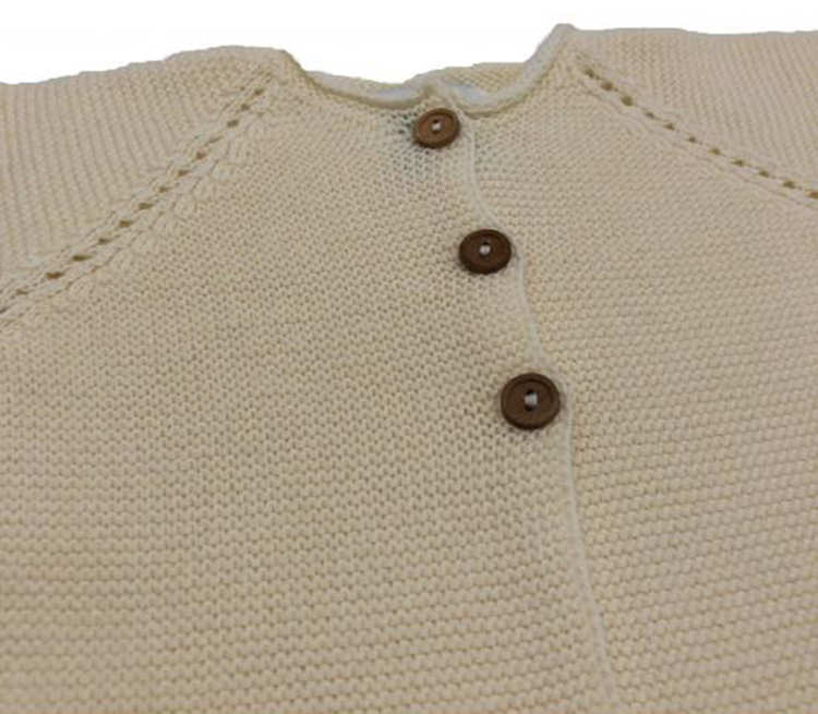 Fabriqué en coton biologique à 100%. La veste a des boutons en bois et aucune couture intérieure, votre bébé sera préservé des irritations.