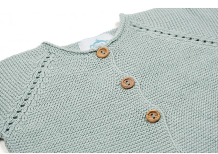 Fabriqué en coton biologique à 100%. La veste a des boutons en bois et aucune couture intérieure, votre bébé sera préservé des irritations.