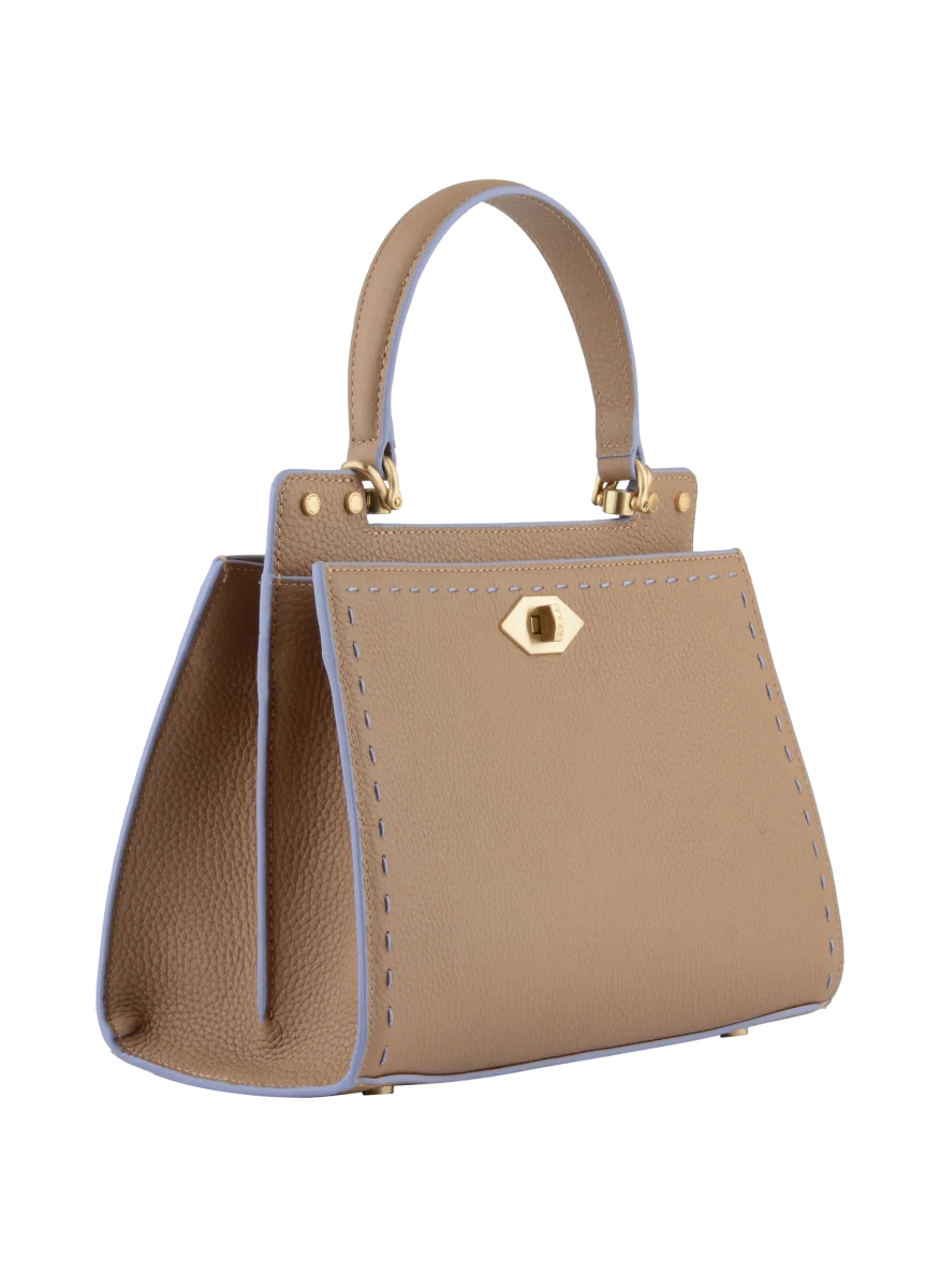 Confectionné en cuir de vachette texturé, ce sac offre une sensation de luxe tout en garantissant une durabilité à toute épreuve. Les finitions en métal doré ajoutent une note d’élégance, tandis que la couture contrastante souligne le design, lui conférant un caractère distinctif.